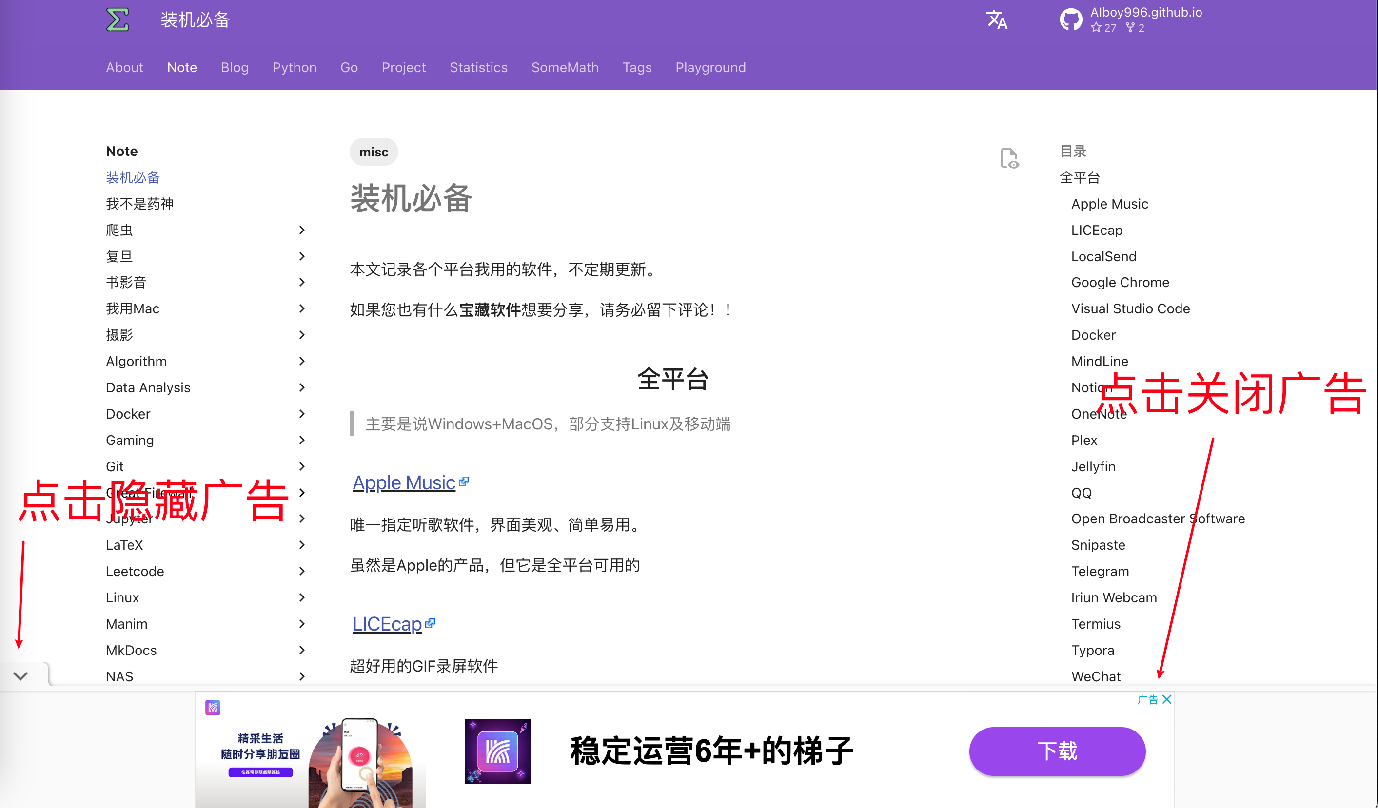 为了降低对用户体验的影响,我只开启了锚定广告,你可以很轻松地隐藏/关闭它: