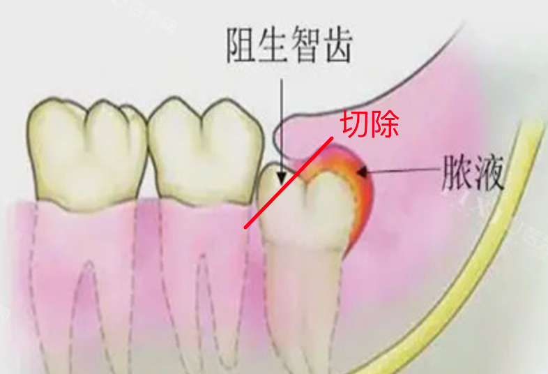 牙医说,我的(右下侧,牙片里是左下侧)智齿没有完全长出来,所以覆盖的牙龈和牙齿之间的缝隙很容易藏污纳垢。再加上我清洁不到位,所以就反复发炎。