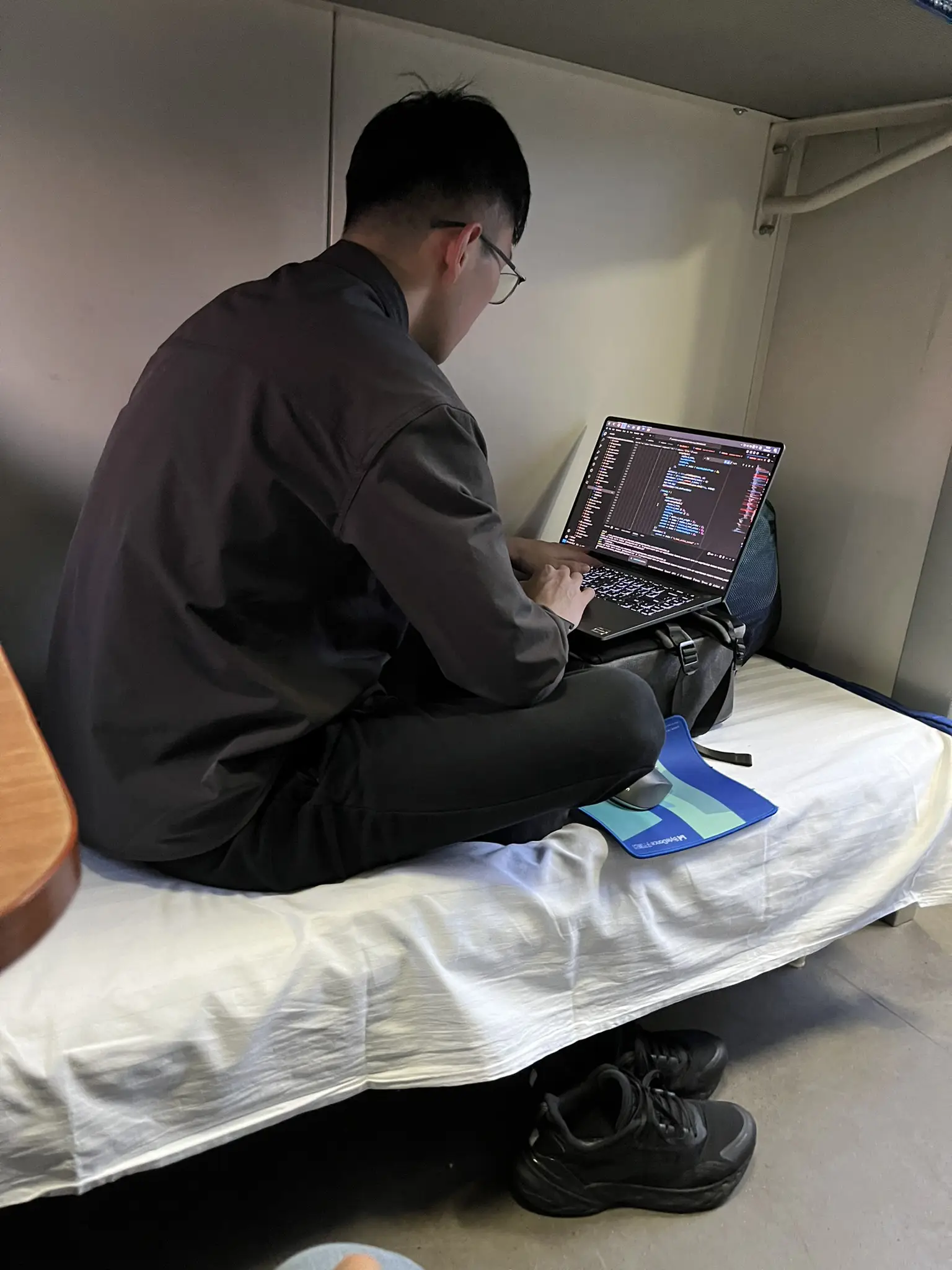 硬卧的房间是没有门的,带个眼罩吧,不然到了晚上会有如下灯光秀: