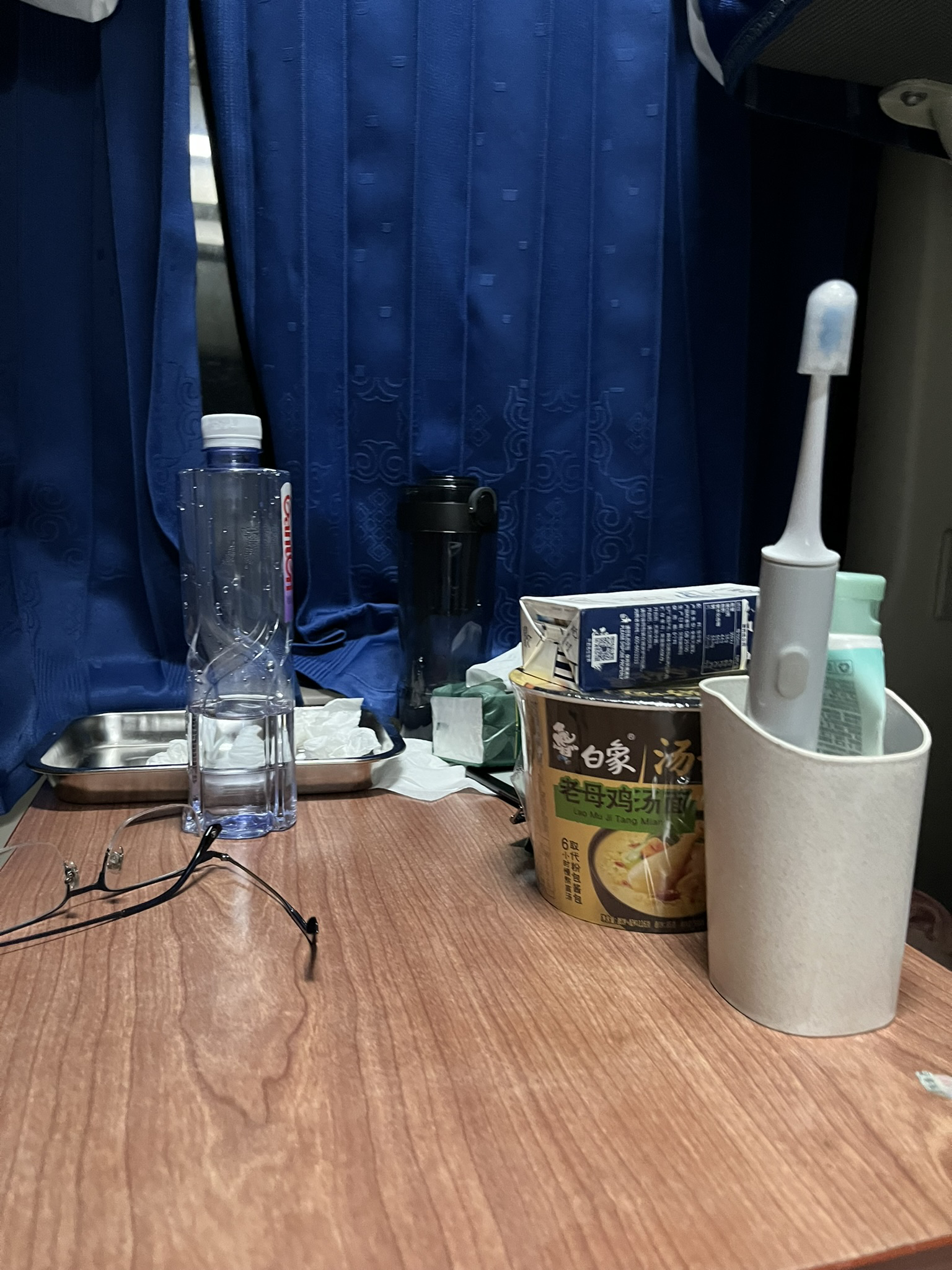 绿皮卧铺的盒饭真的非常难吃,理论上也有餐车,但我做的这趟似乎餐车没有现炒菜。盒饭从饭点的25¥到半夜的15¥,呈现一个线性递减的价格。