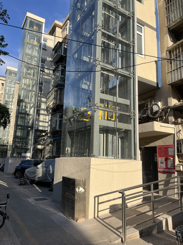 房子是个老破小,不过居然有外置的电梯,也是整挺好: