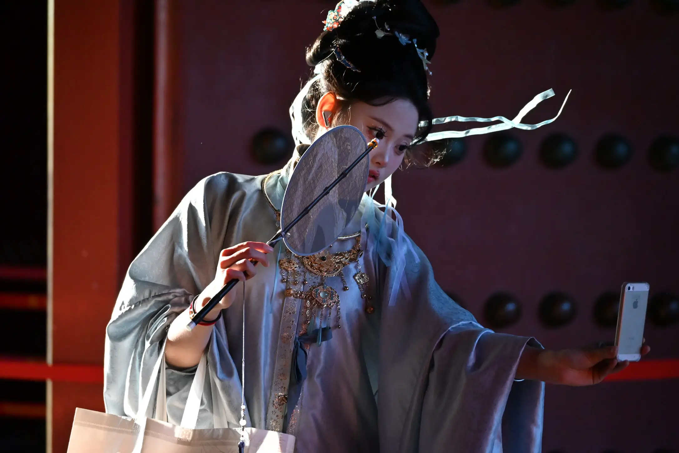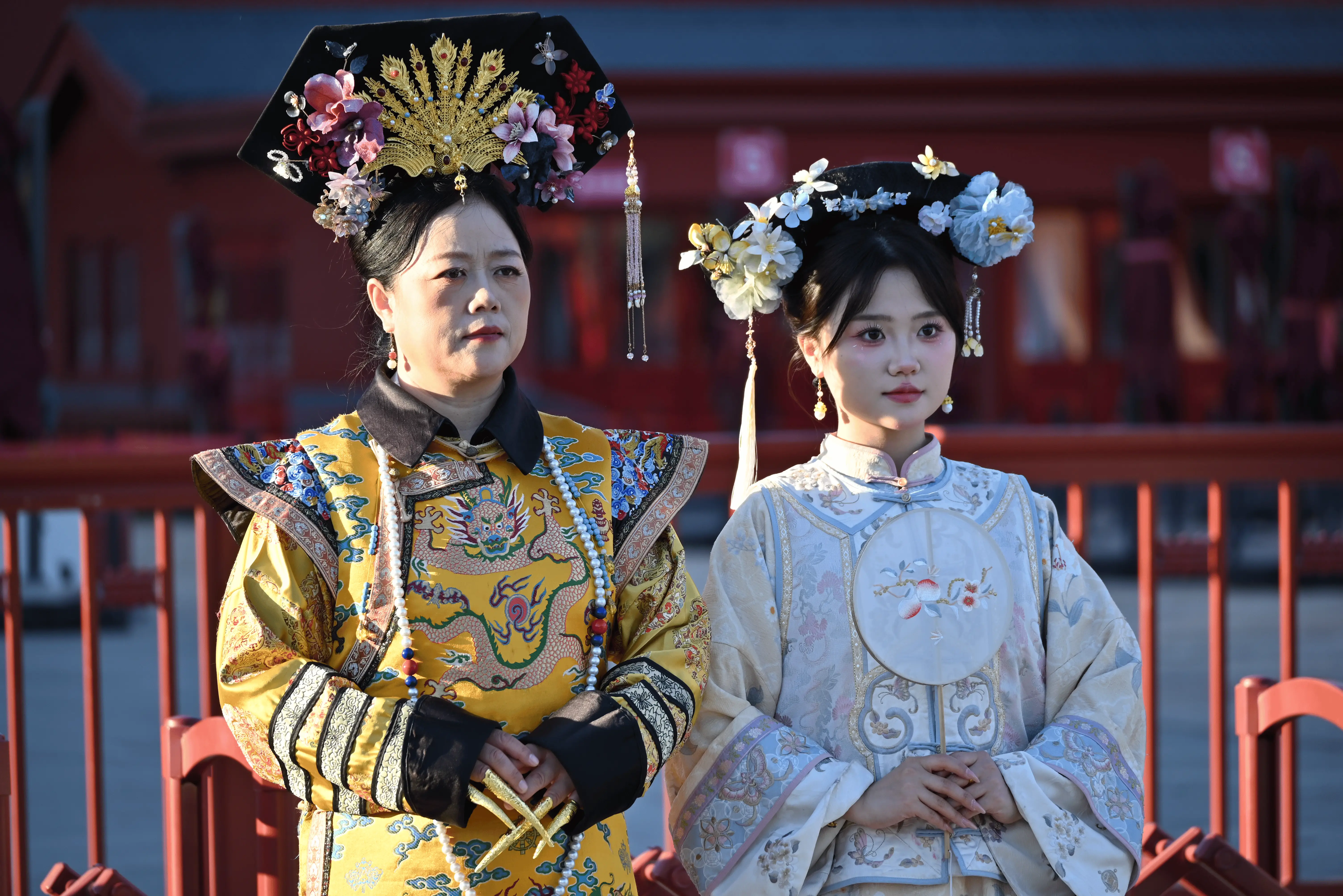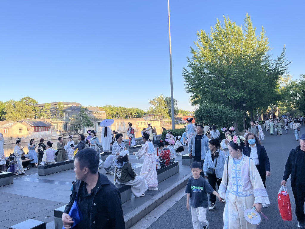 护城河边有非常多的格格和娘娘,宛如进入了大型清廷cos展: