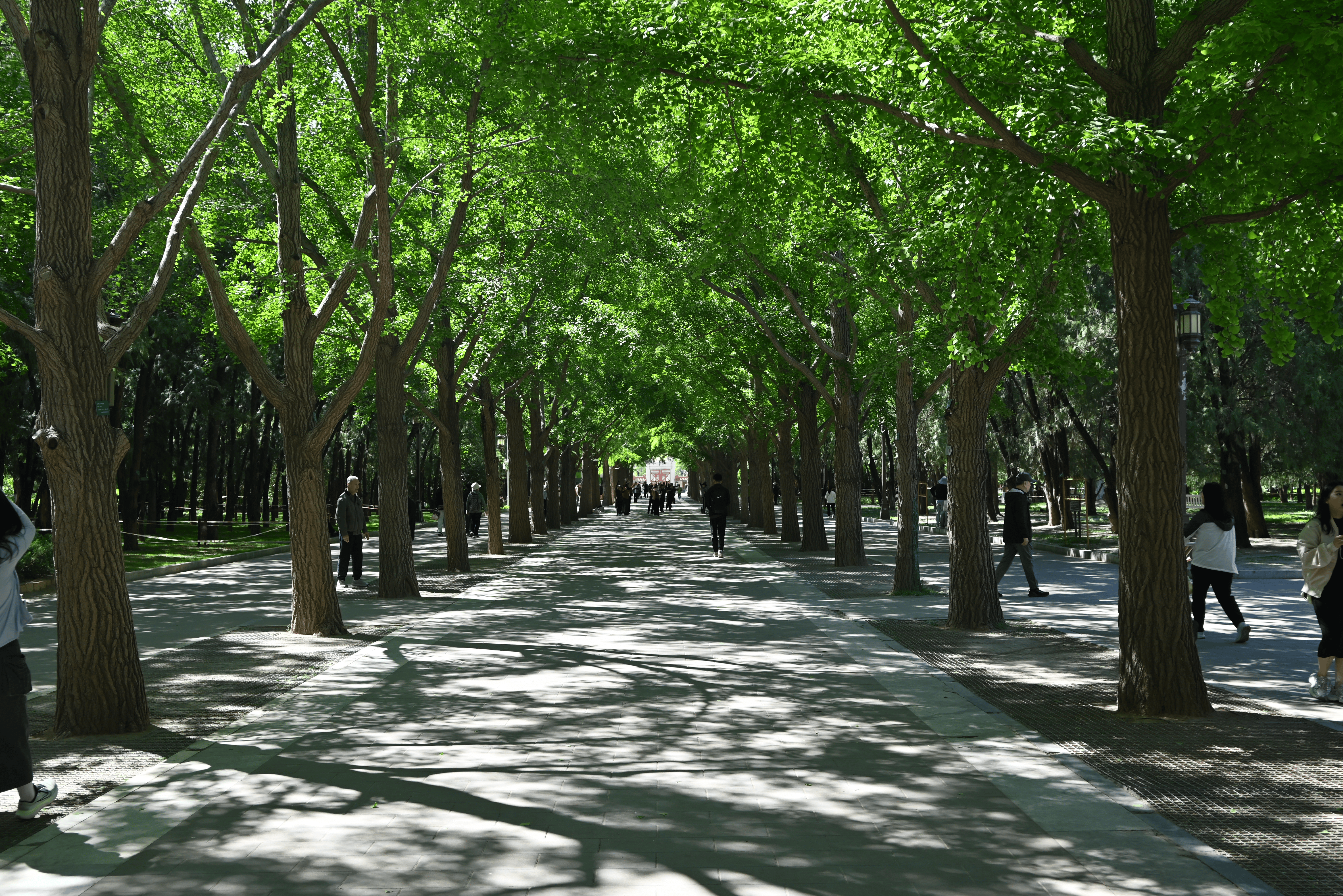 我们是从天坛的西门进去的,进门就是一条端庄大道,很阔气:
