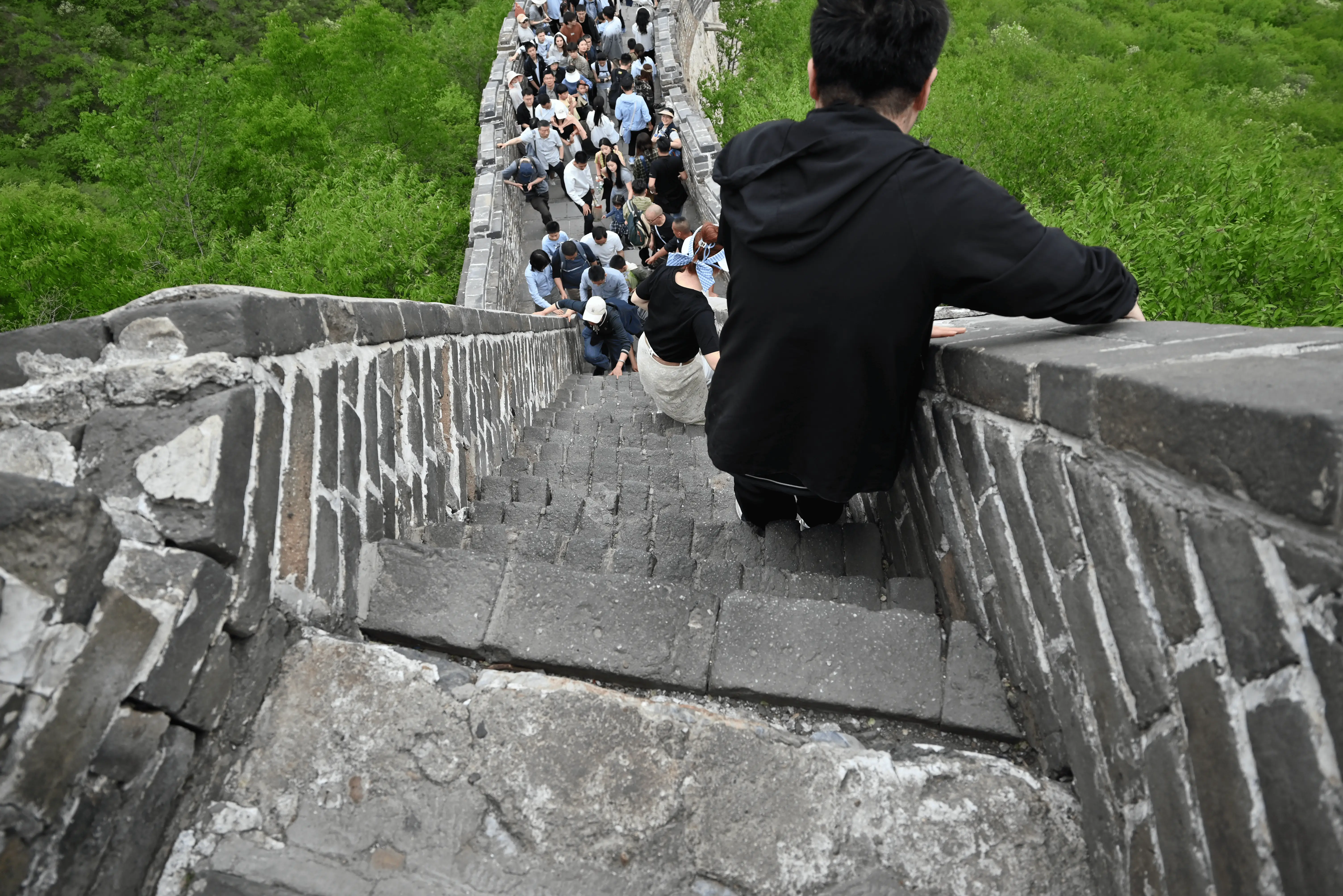 挣扎着走到了六号敌楼,又排了巨长的队,终于从长城上滑下去了: