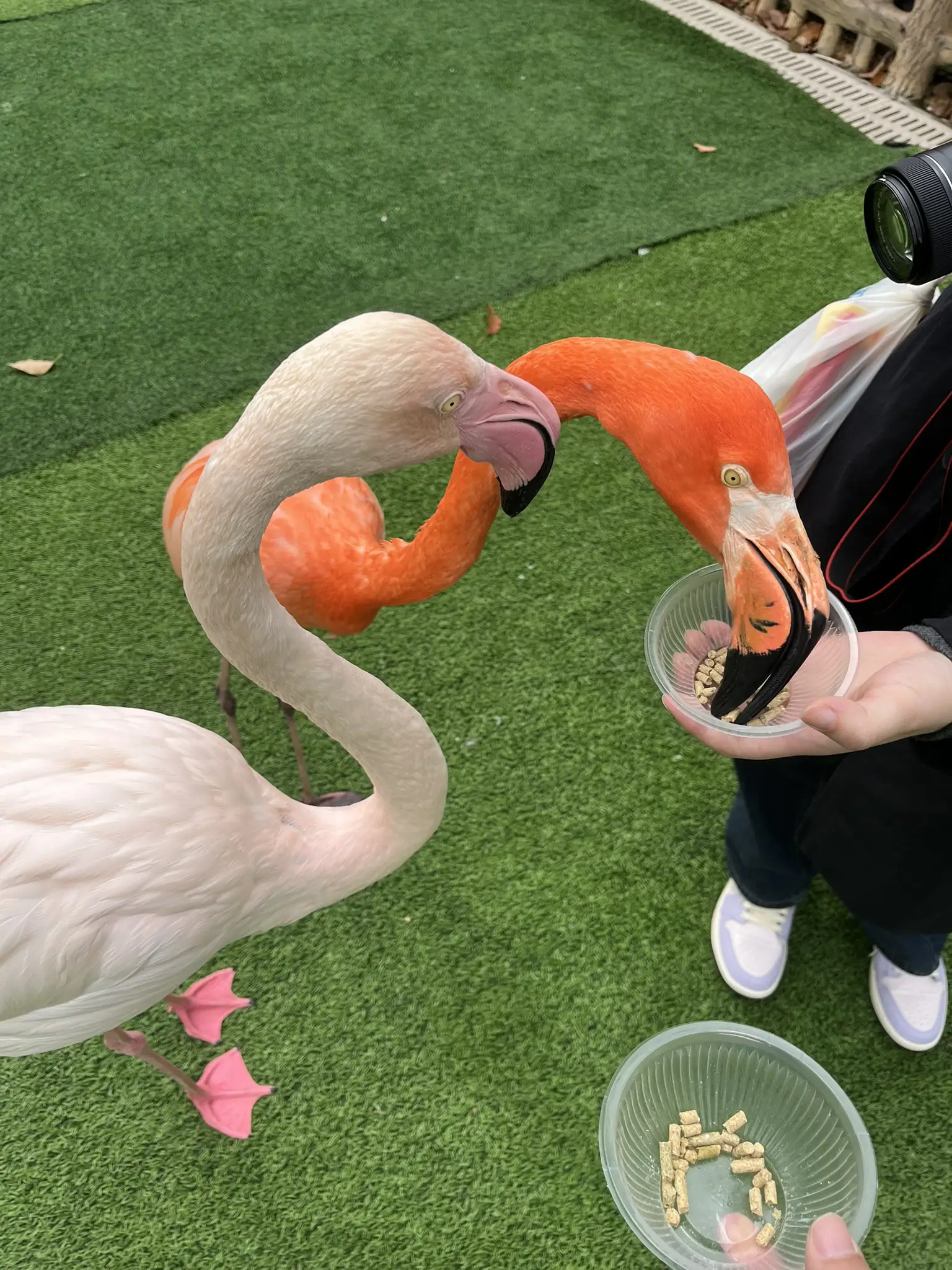 进门就可以看到火烈鸟。真的好红,腿很细很长,嘴巴超级大!