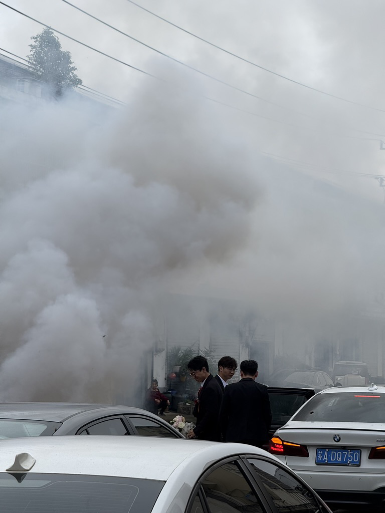 饭后新娘就要被正式接出门了。我们几个伴郎提上嫁妆、放上几条催促的鞭炮🧨,新娘终于下来了。而后依然是在一阵鞭炮声中,车队接上新娘回家咯。