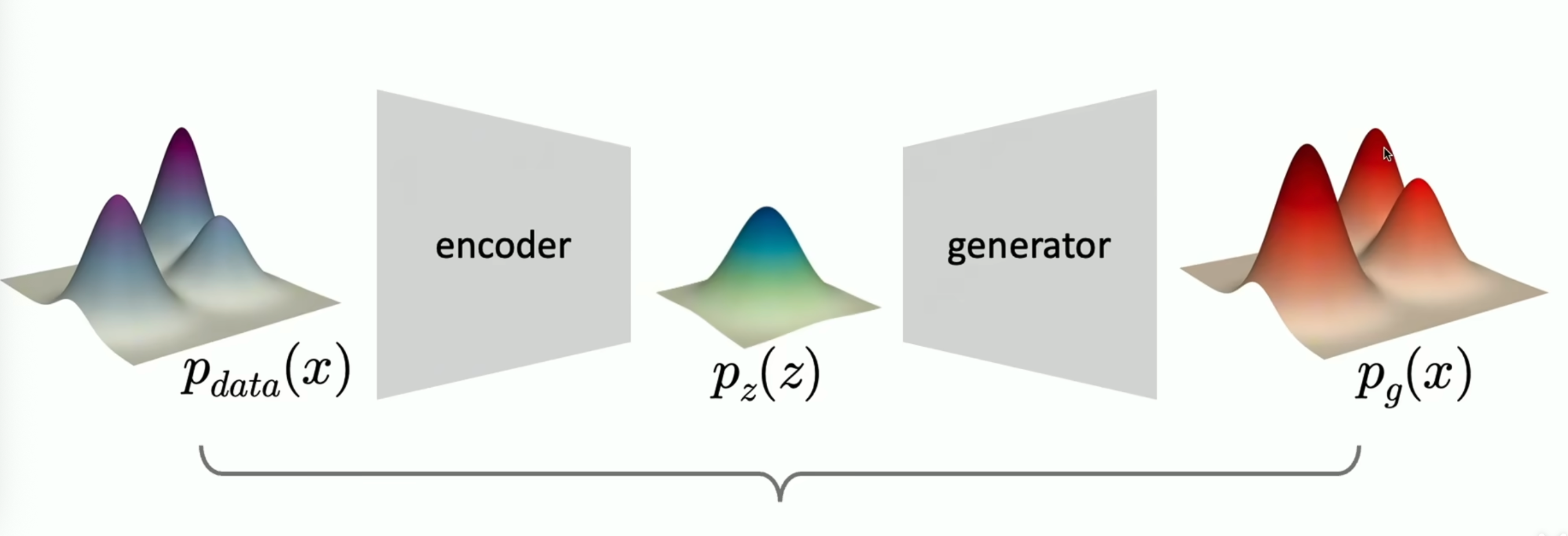 $$ x \sim p_x, \quad g_{\mathrm{gen}} \rightrightarrows p_x $$
