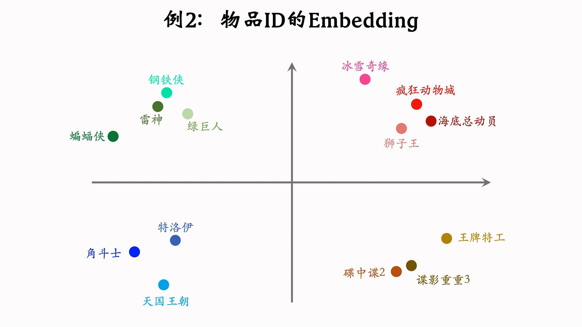 Embedding需要满足一些特征。比较直观的就是相似的物品之间的距离比较接近: