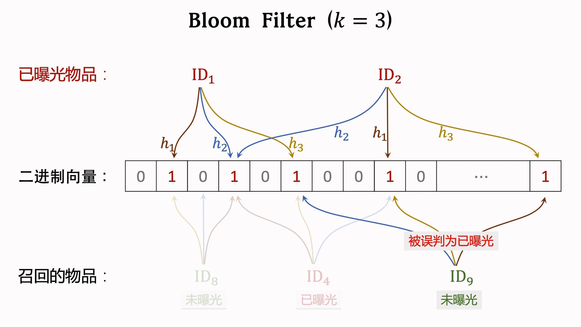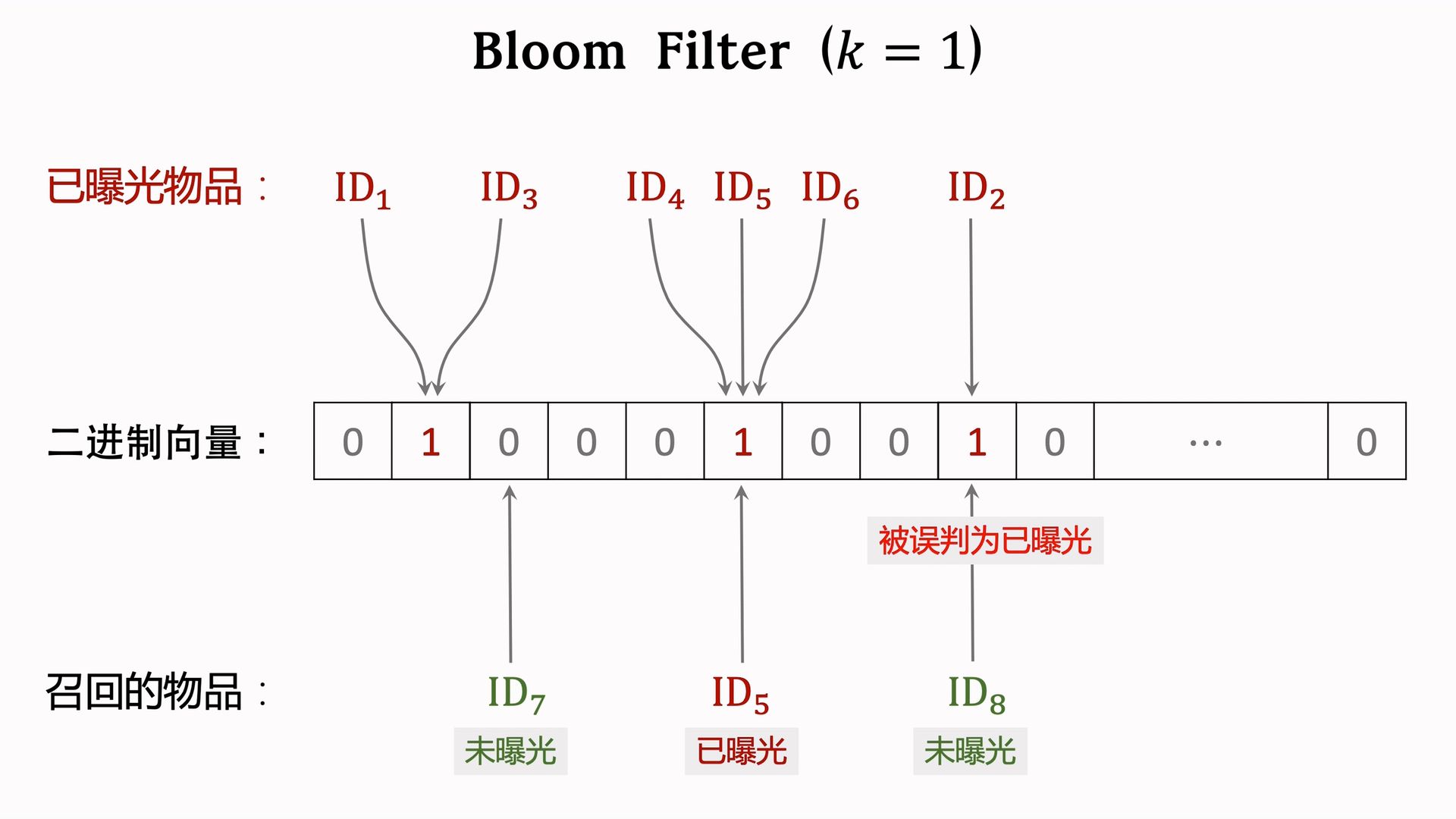 其实就是把物品ID通过hash函数映射到一个二进制。最简单的情况就是使用一个hash函数: