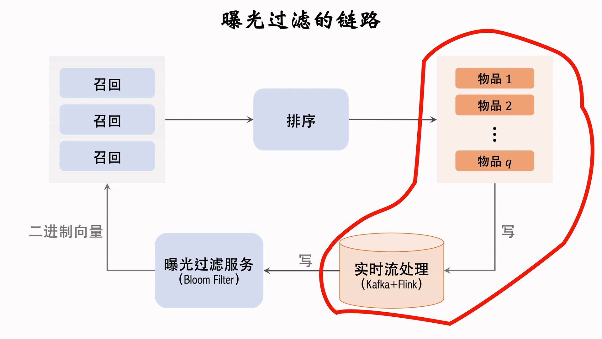 处理必须要快,因为用户刷新很快。需要用实时流处理,否则会出现重复曝光的情况: