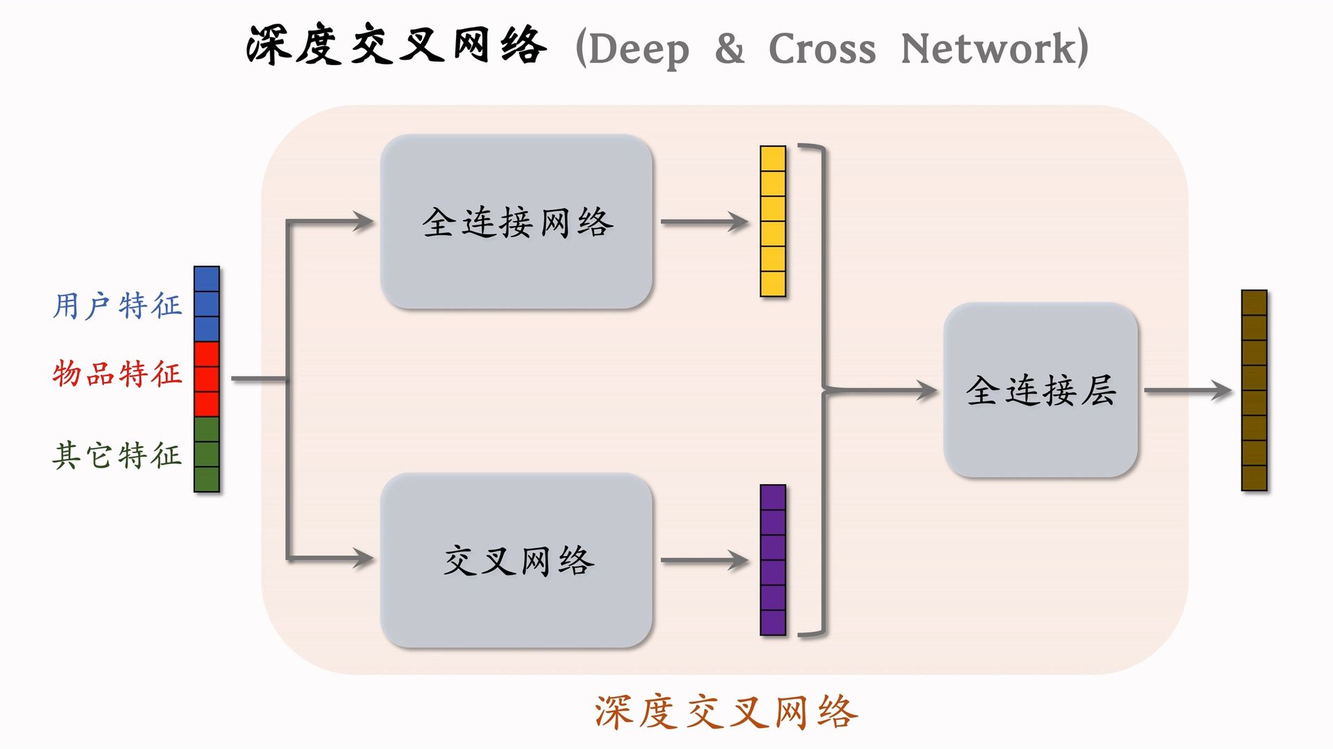此前的召回模型、排序模型中有非常多的神经网络组件(例如双塔模型的两个塔),实际上可以使用任意类型的神经网络。最简单的就是全连接,在推荐系统中使用本节介绍的DCN效果要好得多。