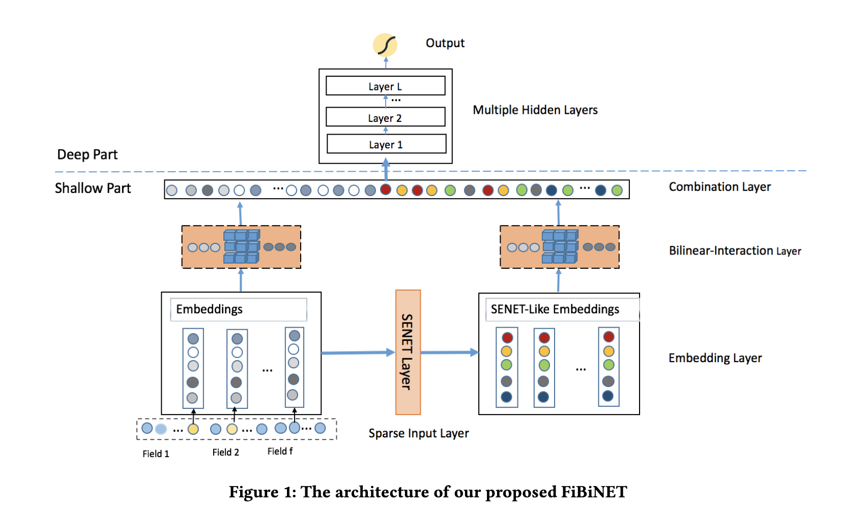 FiBiNet发表于2019年,结合了SENet和Bilinear Cross。