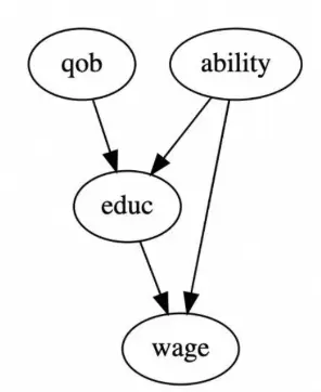 - 变量选择偏差:例如上图中的受教育程度和工资之间,他们可能都收到个人能力的影响。