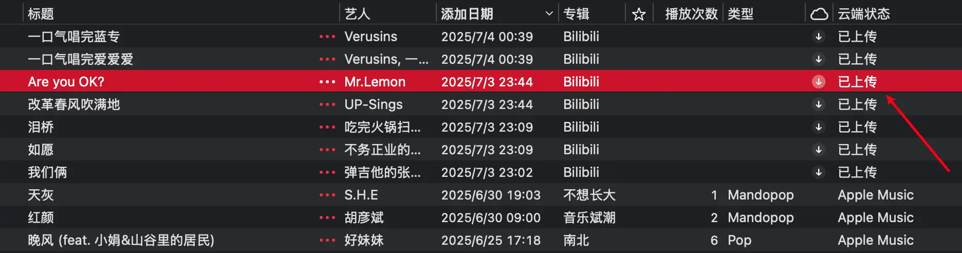 好在,和网易云类似,Apple Music可以自己上传音乐(不支持FLAC格式,最好是ALAC格式;文件大小上限未知,至少50MB完全没问题)。