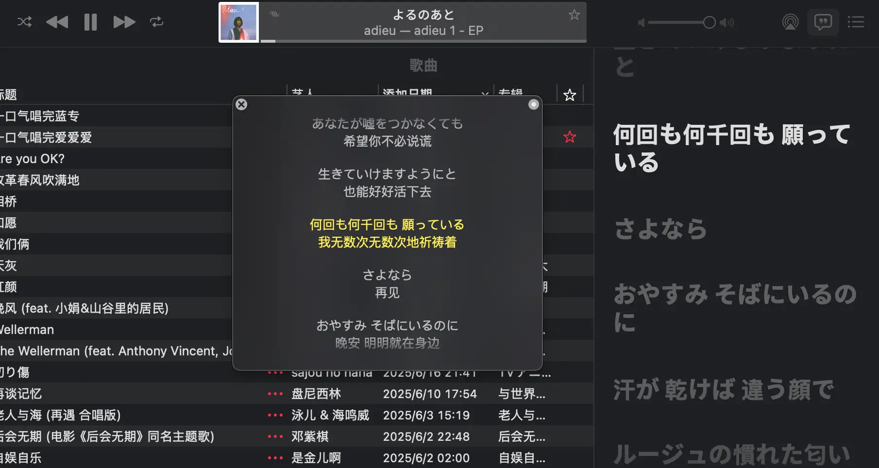 另外一个长久以来的痛点就是Apple Music里的外文歌词没有本地化翻译(更没有歌词发音这种人性化的功能)。