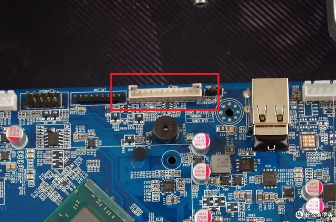 实际上F2-220的主板上是有视频信号接口的,处理器Intel® Celeron® J1800也有核显,不过主板上的针脚空在那里,没有给连接线: