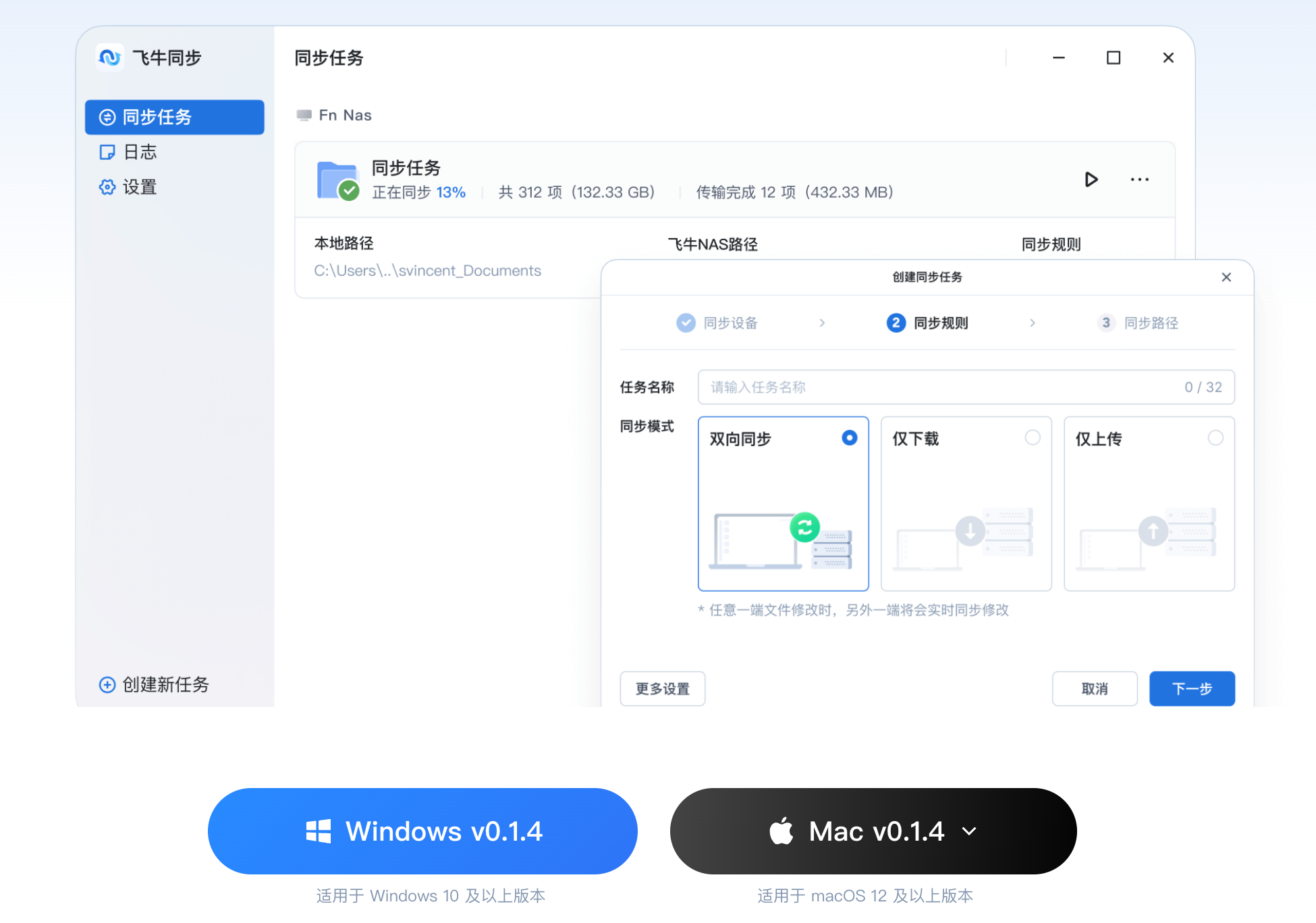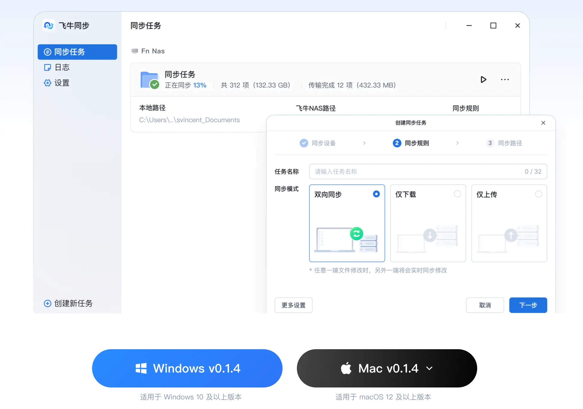 - 飞牛同步我没怎么用,没有这方面的需求。