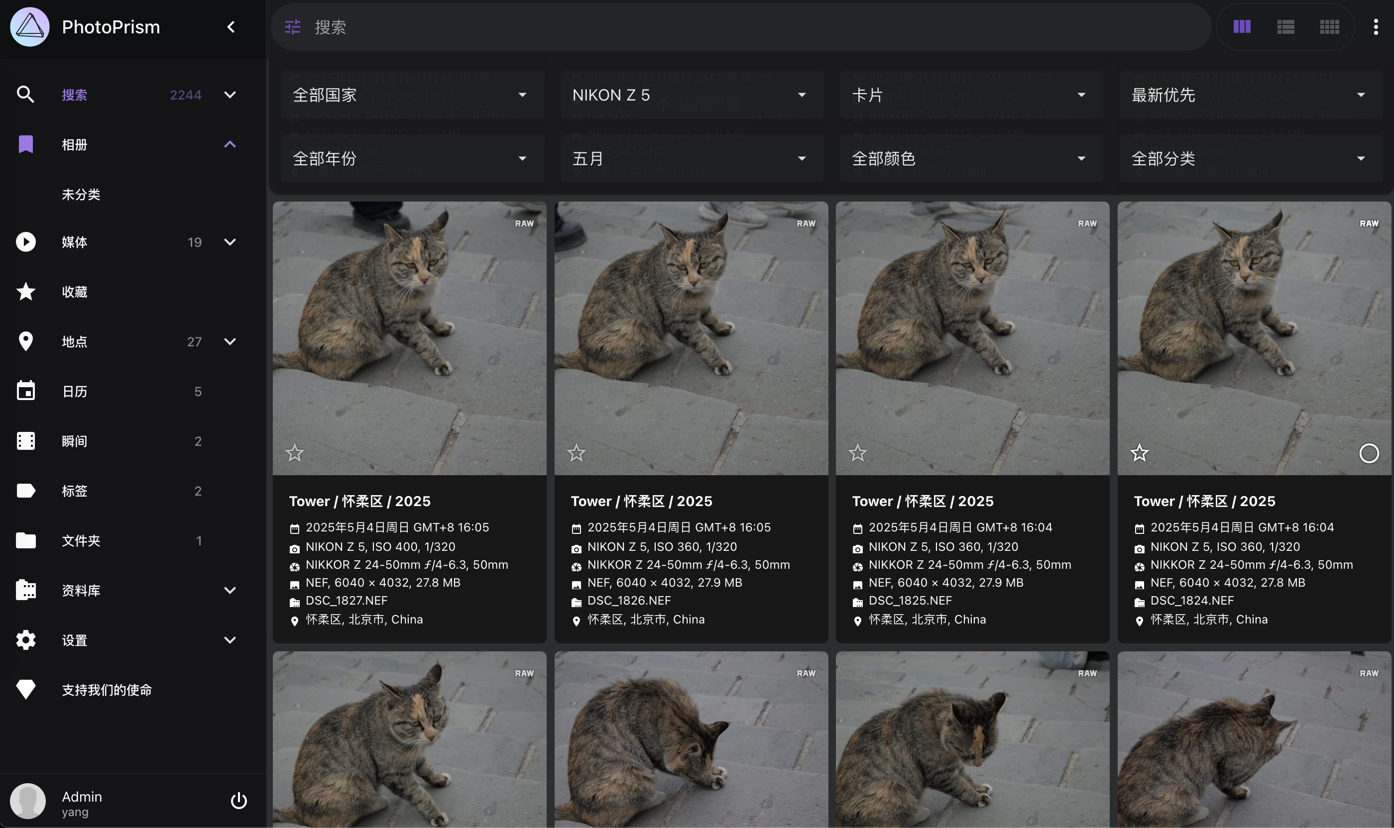 所以现在我的策略是全都要。刚好Z5支持双存储卡,一张存RAW,一张存中等规格的JPG。拍完之后我会把选好的JPG照片备份到iCloud,方便随时随地在手机上查看;RAW底片则统一扔到NAS,搞了一个局域网云相册,方便浏览、选片、下载、修图。