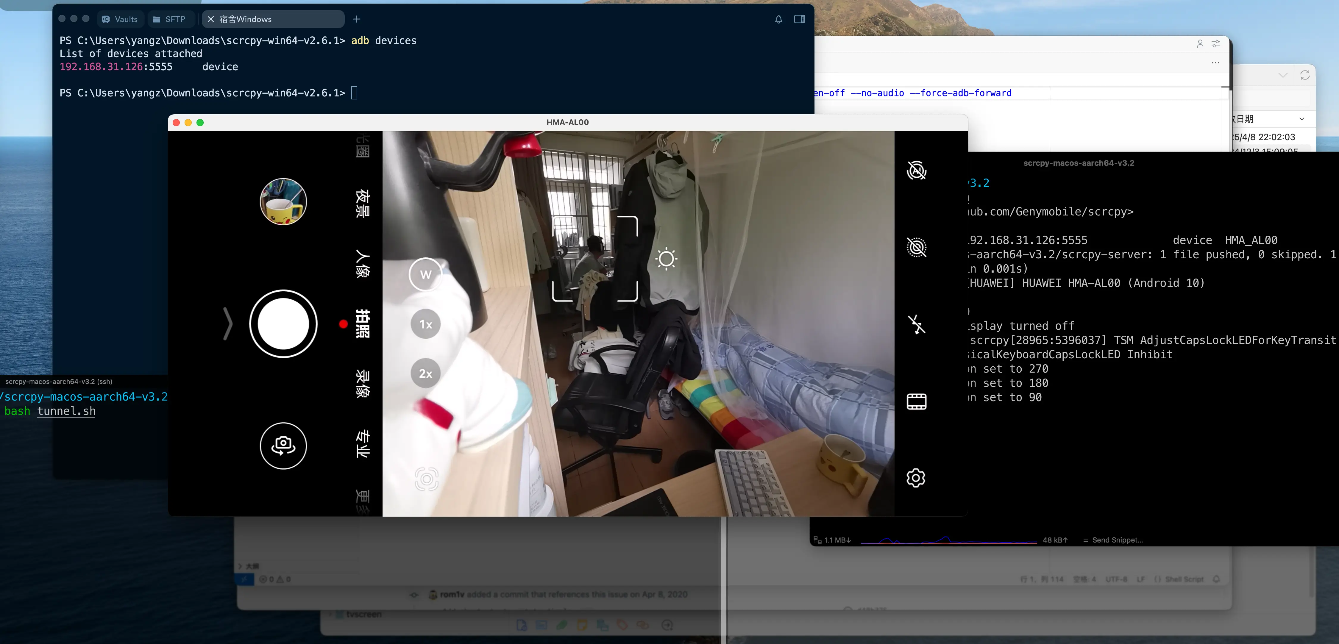 然后就可以像远程桌面一样,用scrcpy远程访问安卓了: