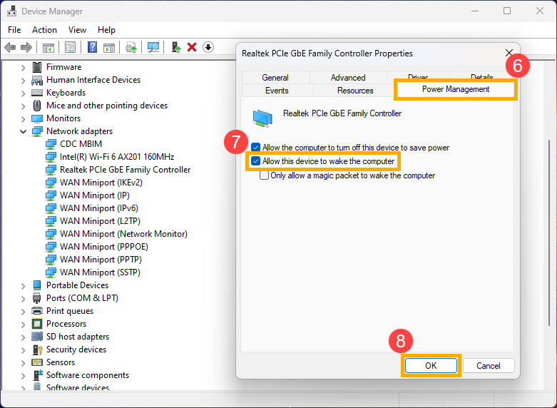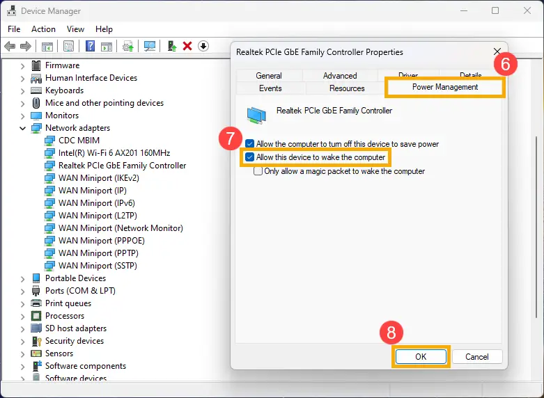 Step 2 允许网卡设备唤醒电脑¶