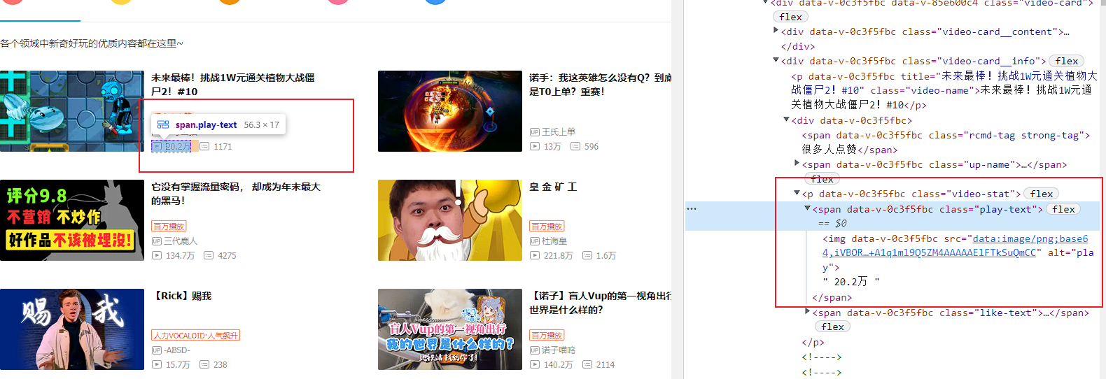 播放量这个数字在一个span标签内部,它的class是play-text,我们想要的内容是他的文本内容;