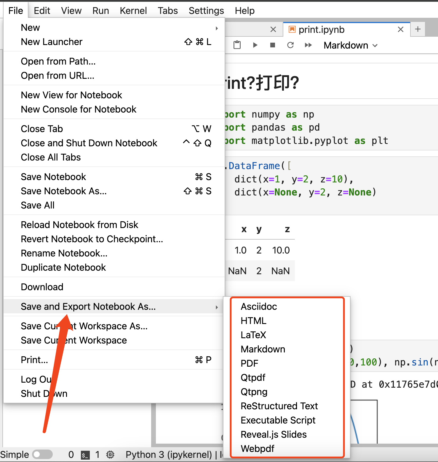 但是别人不一定用,那么应该如何把Jupyter文档打印成为可读的PDF文档方便我们分享出去呢?