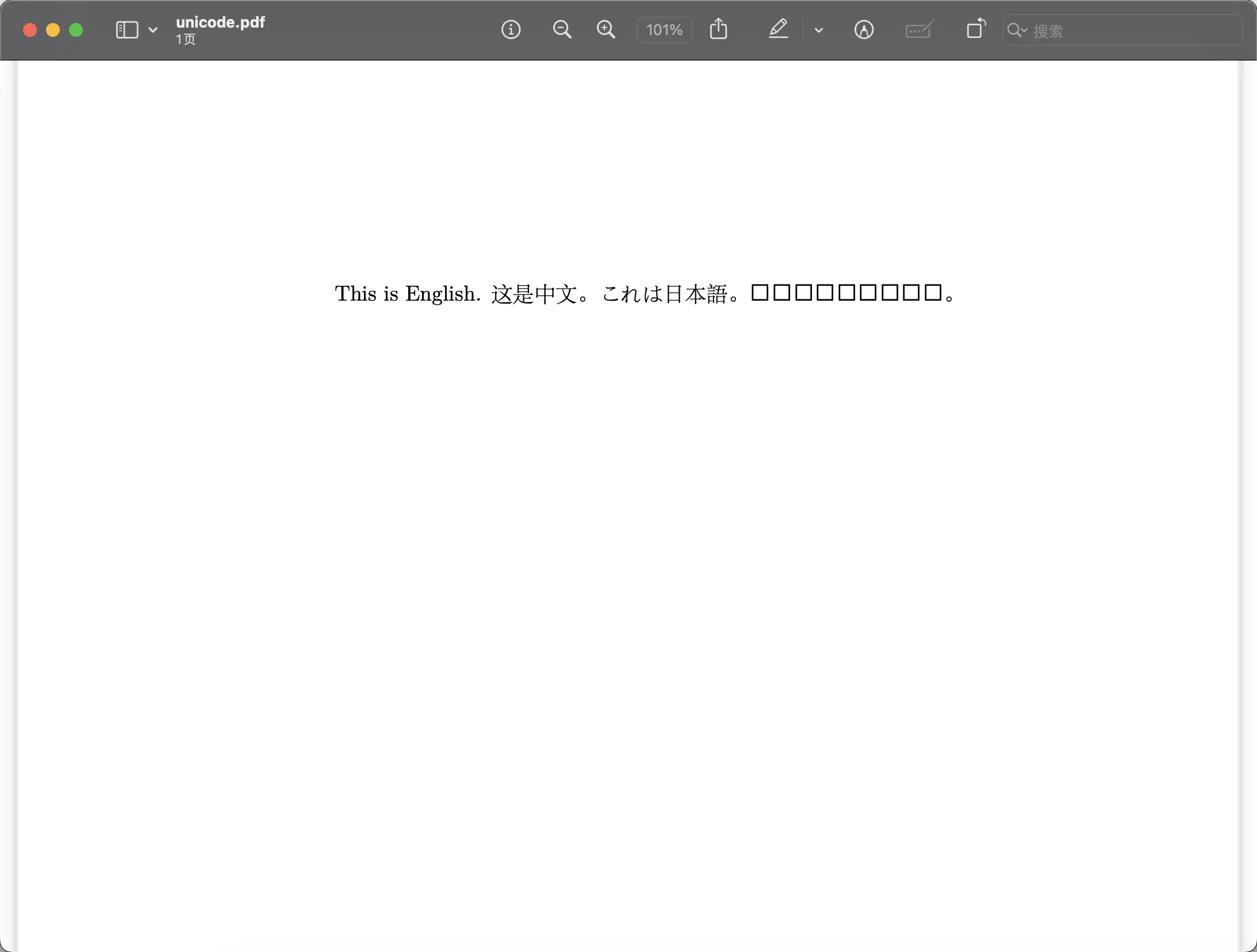 fontspec宏包,然后使用setmainfont命令把主字体改成了苹方字体。就可以正常渲染中文和日文啦: 看来这个字体下韩文还是不行,但我不在乎韩文,我也懒得试其他字体了。
