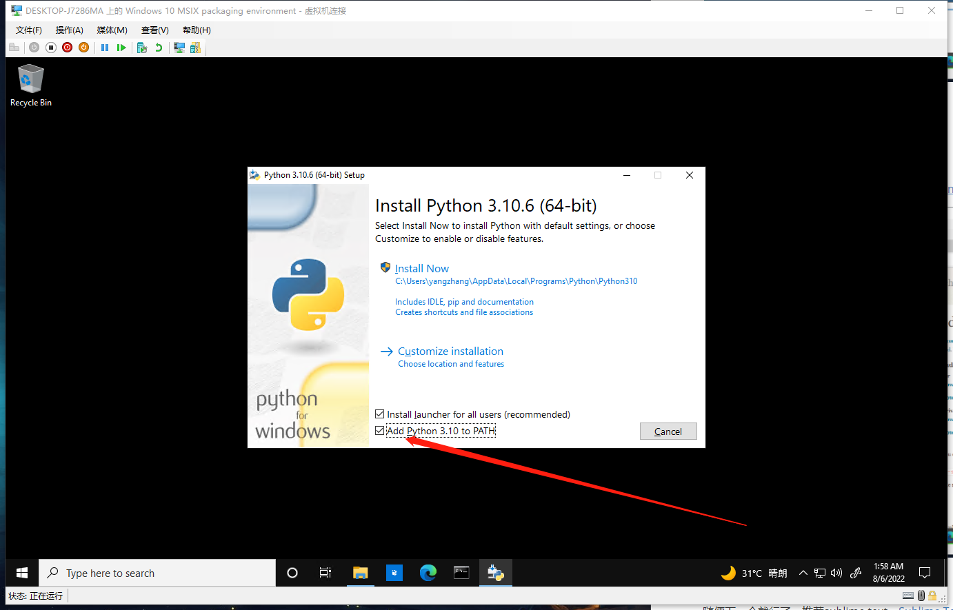 注意图中箭头所指的地方,需要勾选上Add to PATH的选项,然后安装即可。