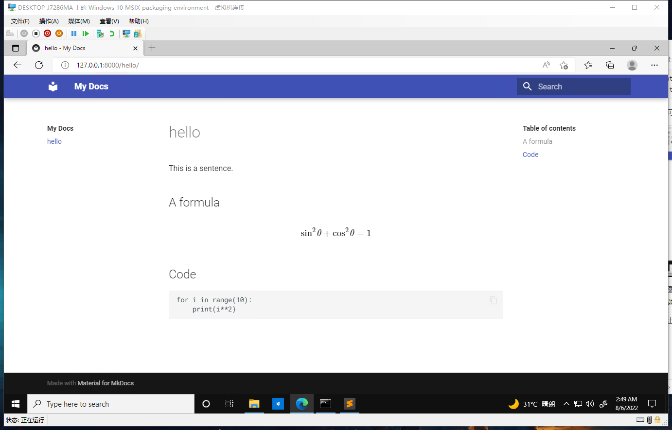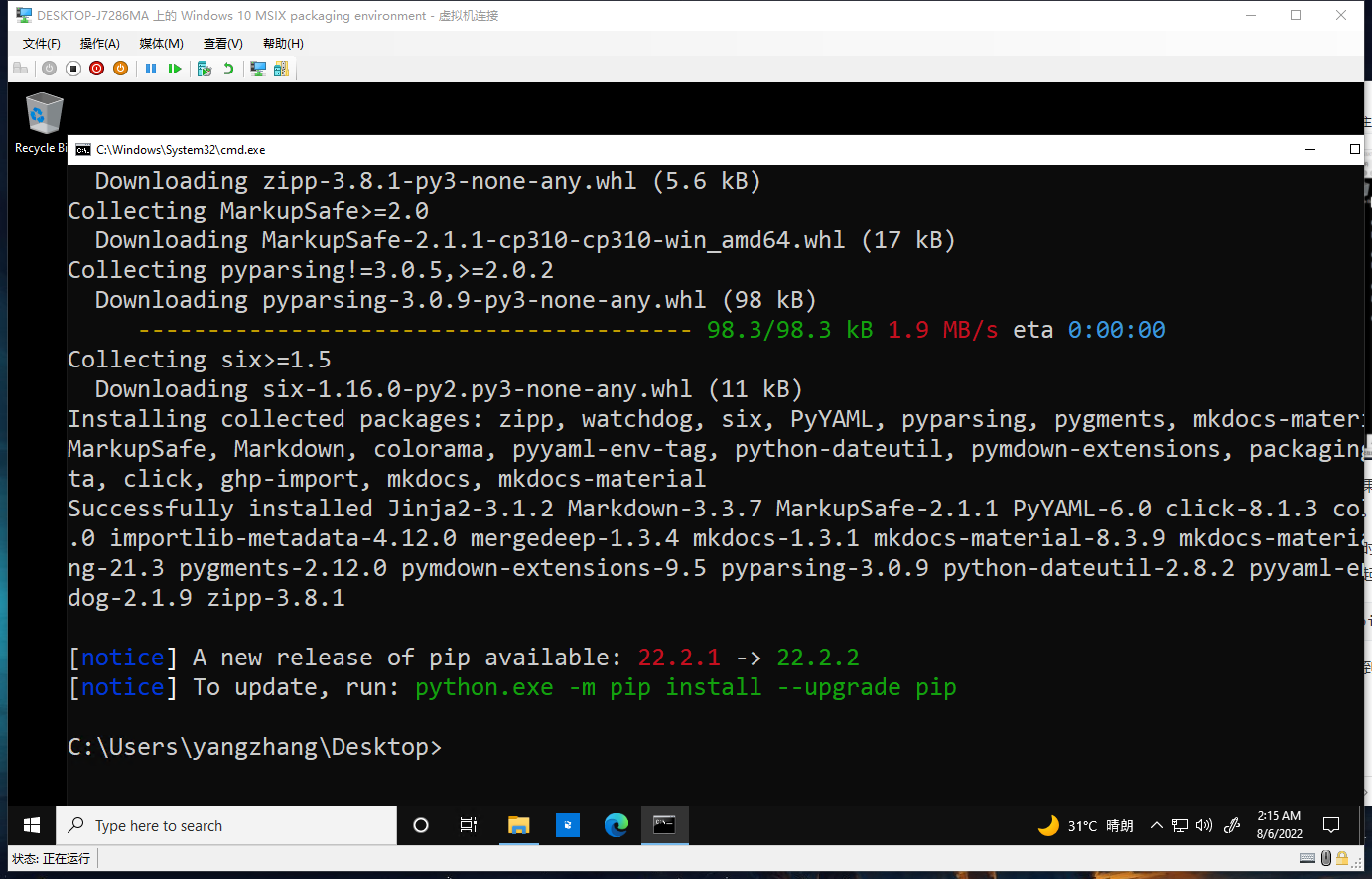 这时候我们可以用pip来安装mkdocs,顺便把mkdocs-material也一起安装了: