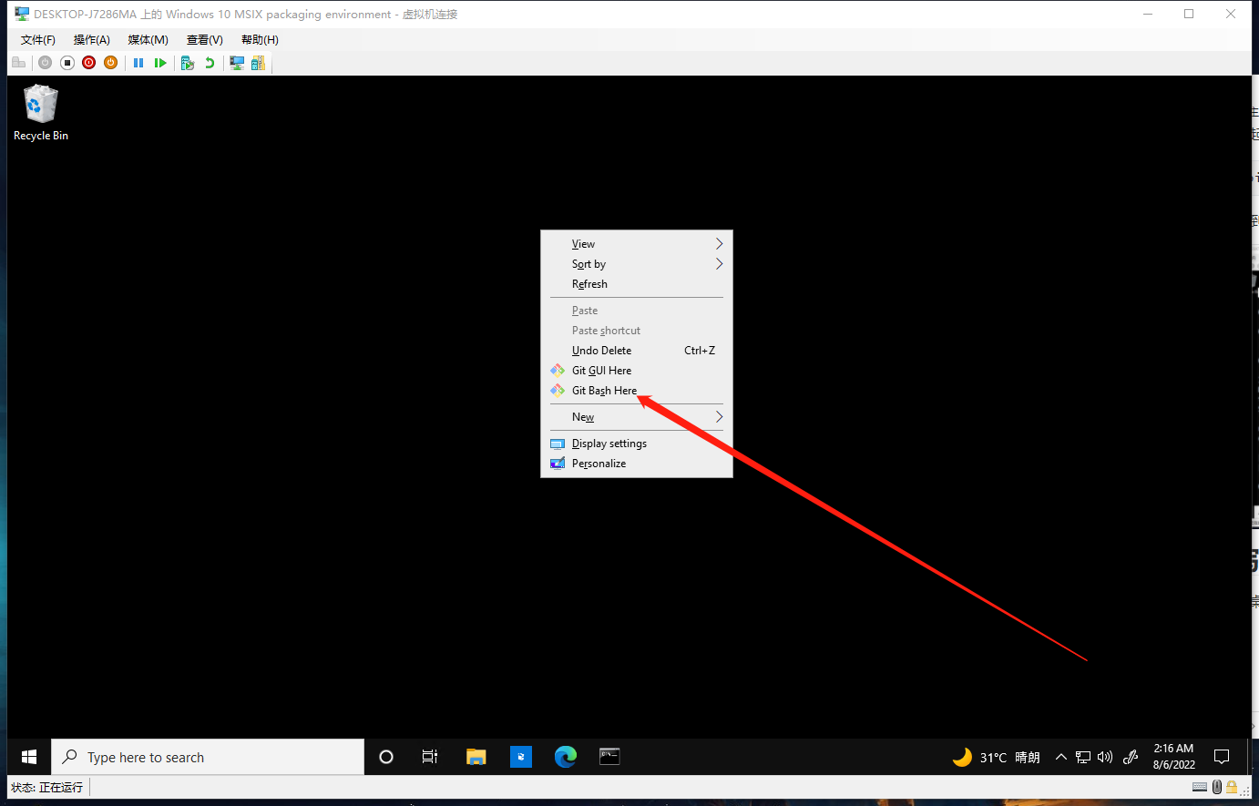 在桌面右击,如果你前面安装git的时候勾选了相关选项(默认是勾选的),就能看到git bash here的选项: