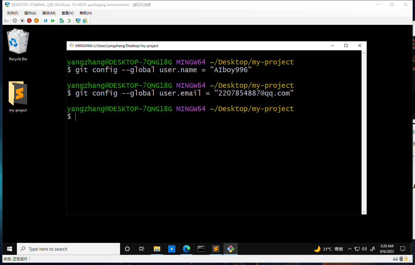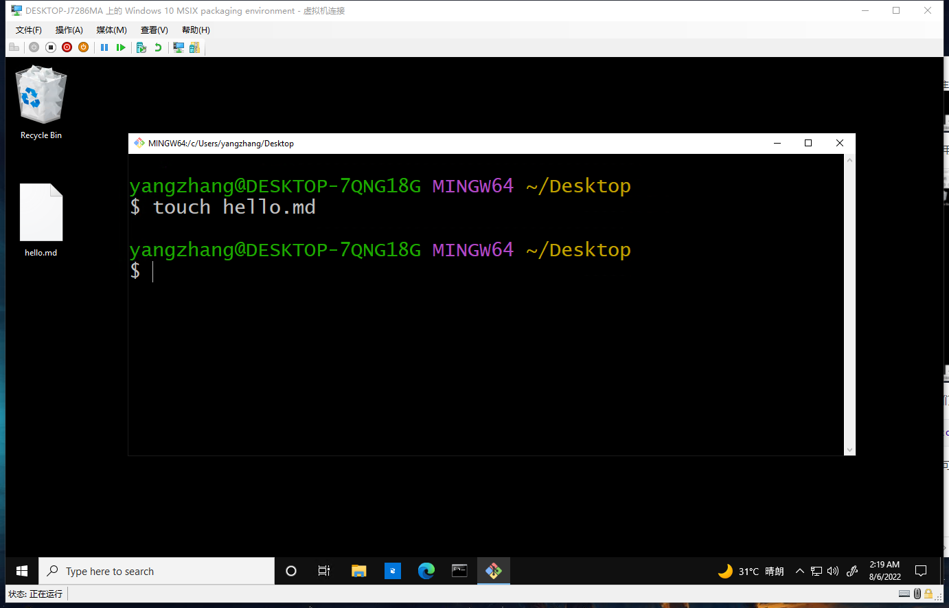 使用这个快捷方式我们可以在桌面打开一个git bash窗口: