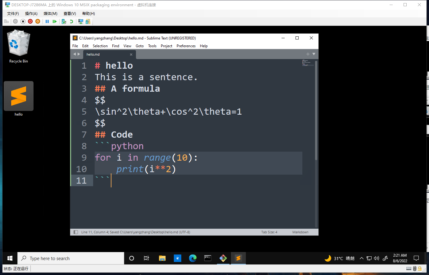 我随手写了这么点东西,仅作演示,更多的markdown语法可以参考我之前写的jupyter教程,上图的代码也放在下面:
