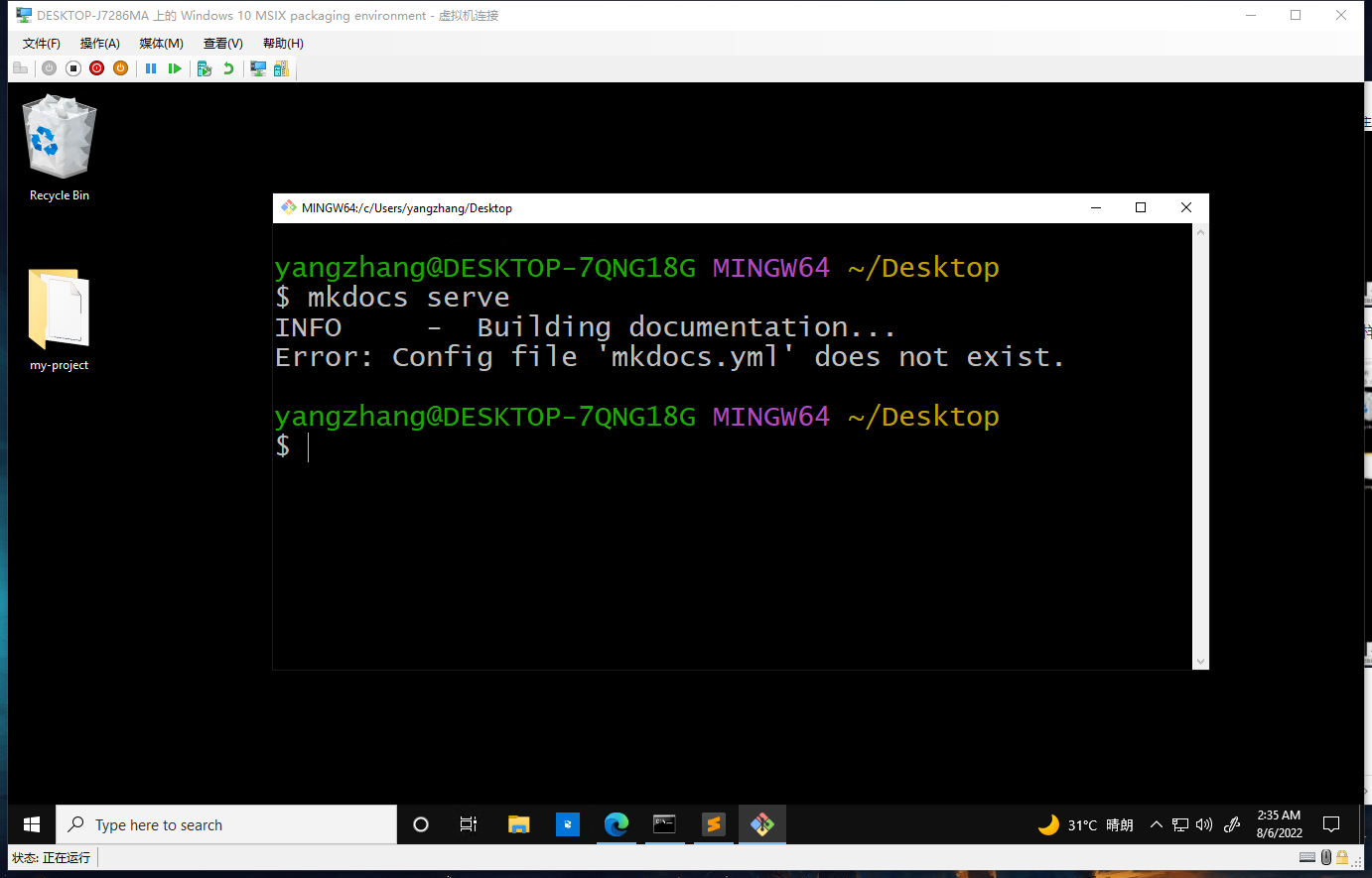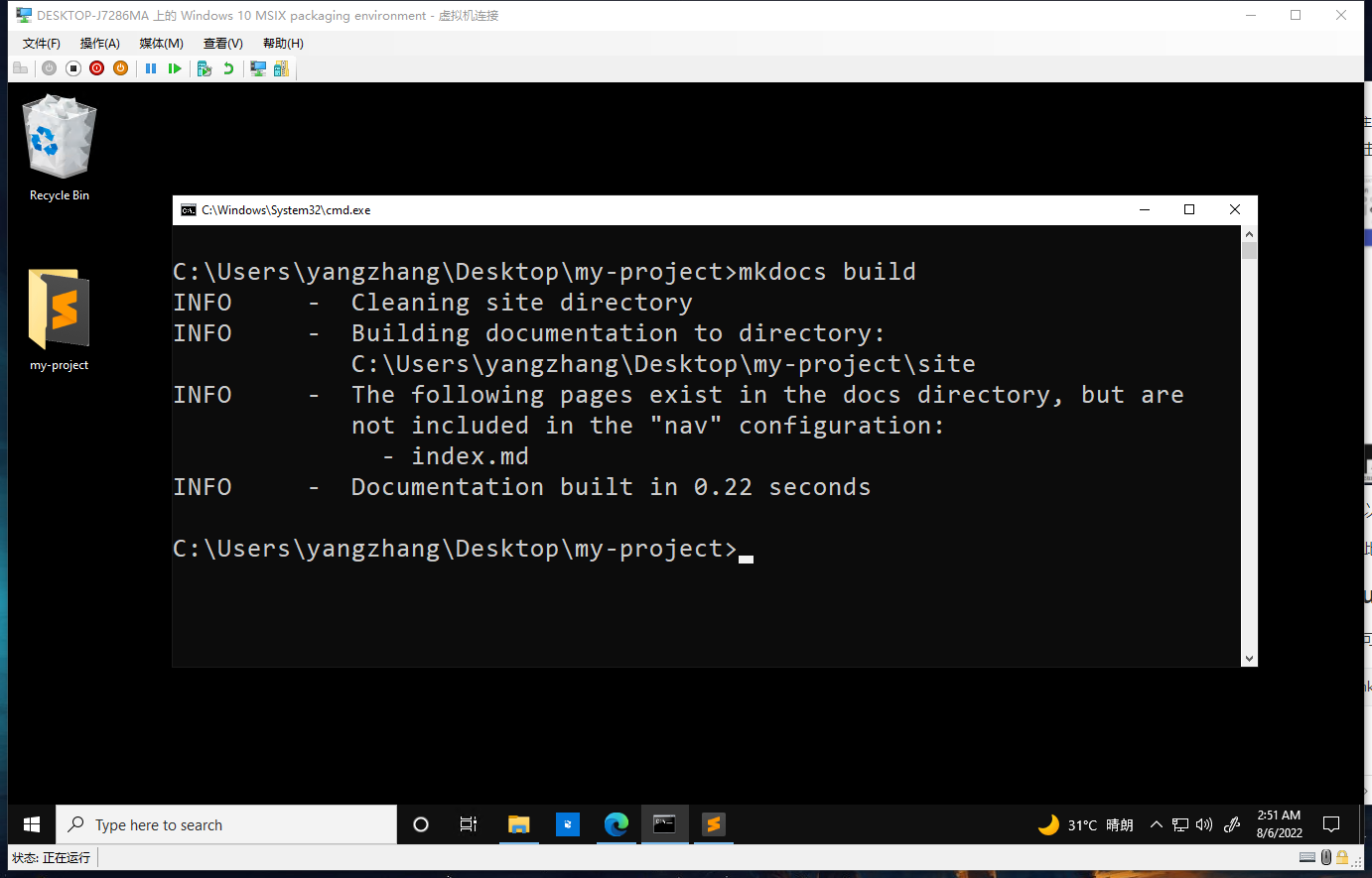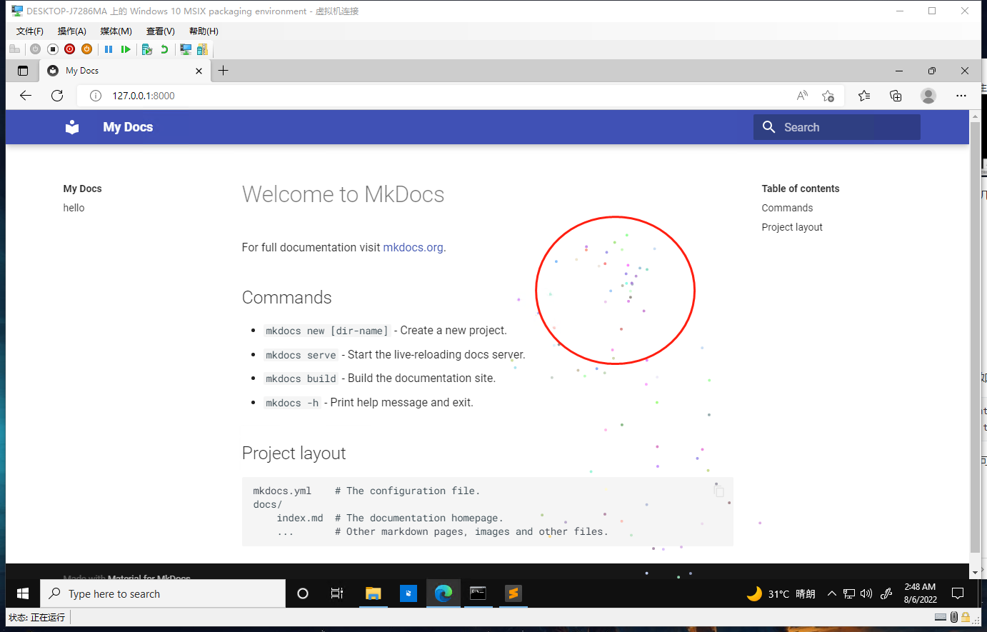 第一条命令是切换到my-project文件夹下面,第二条则是开始mkdocs的服务。