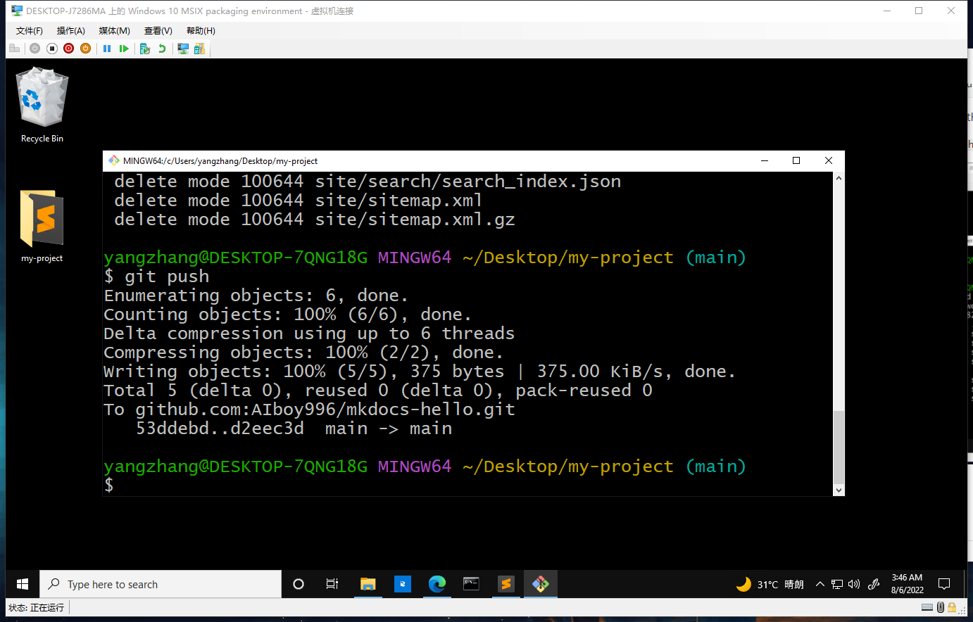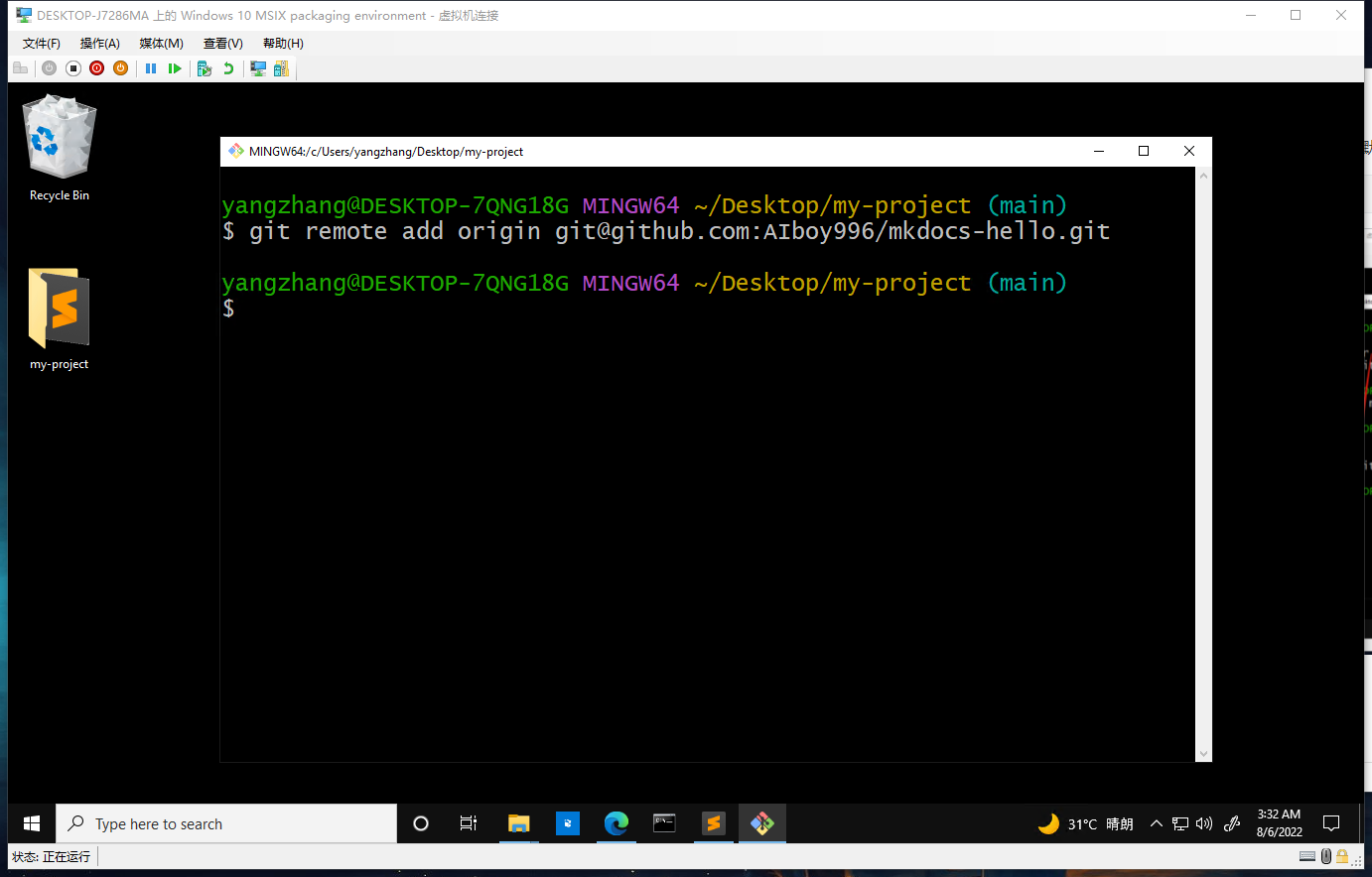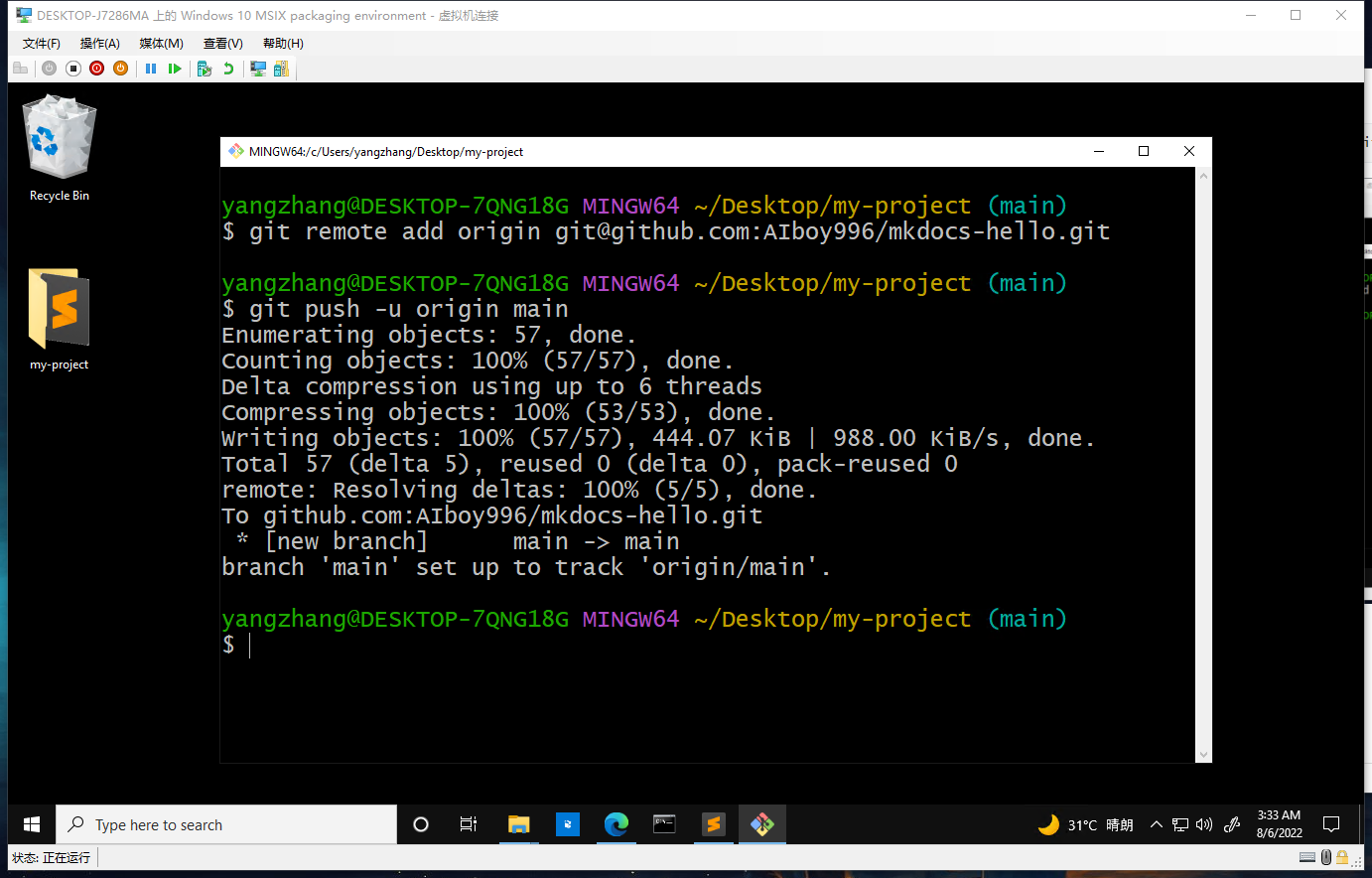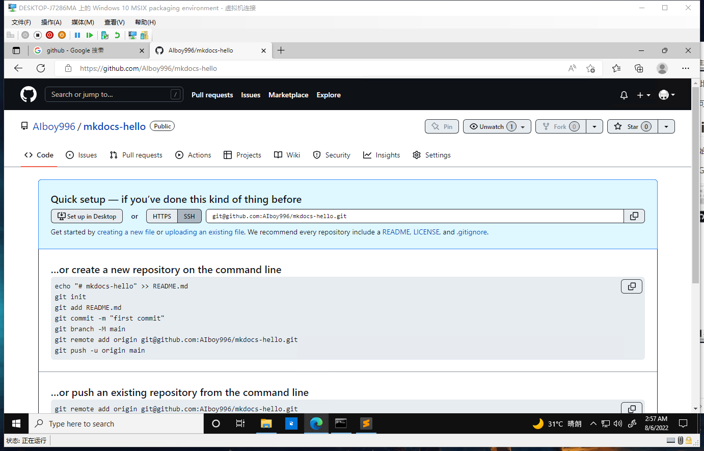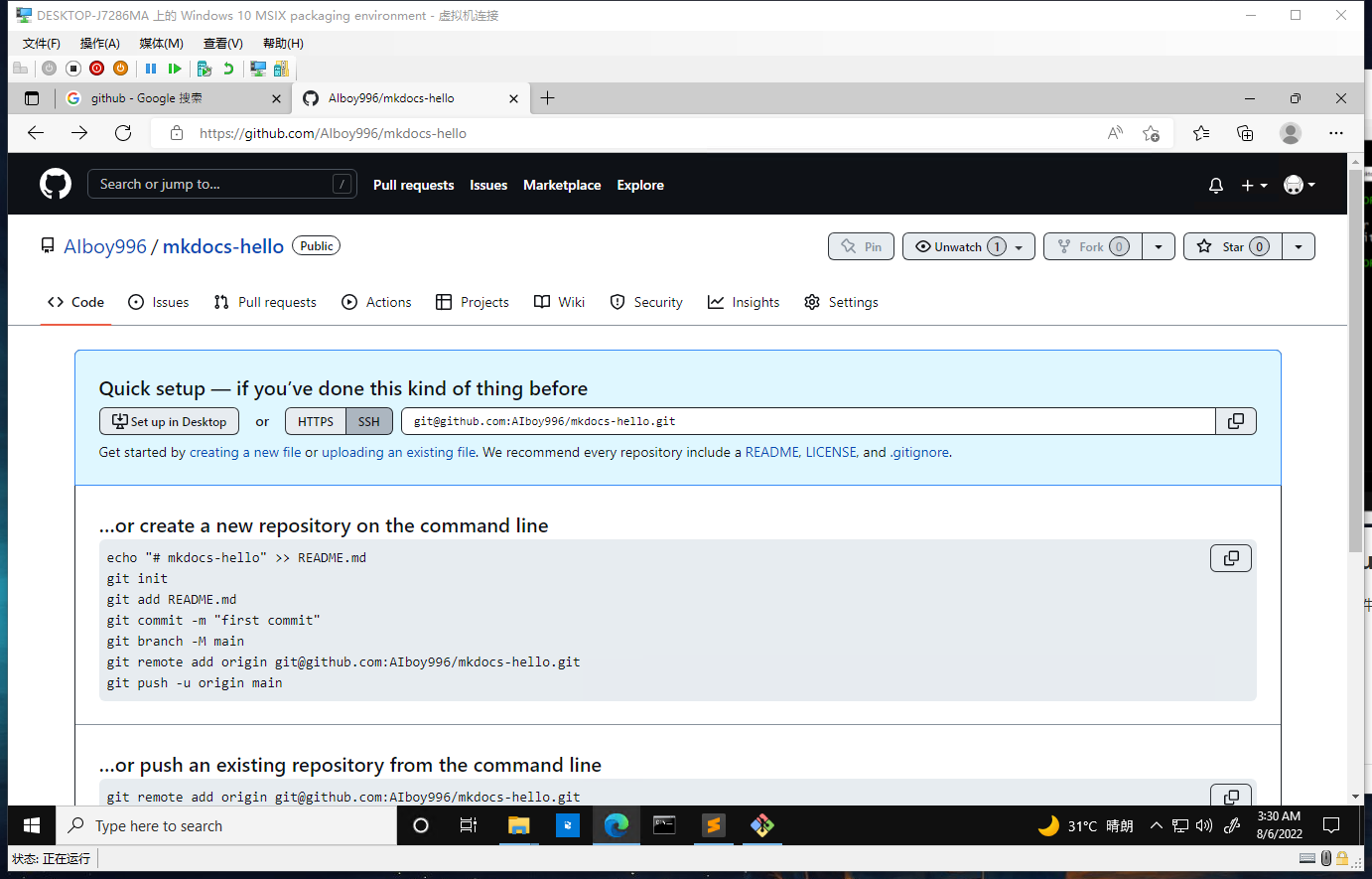 git remote add origin git@github.com:AIboy996/mkdocs-hello.git