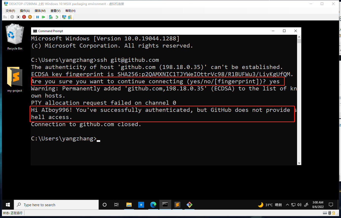 GitHub会自动识别我们刚才添加的ssh key,确认我们的身份。
