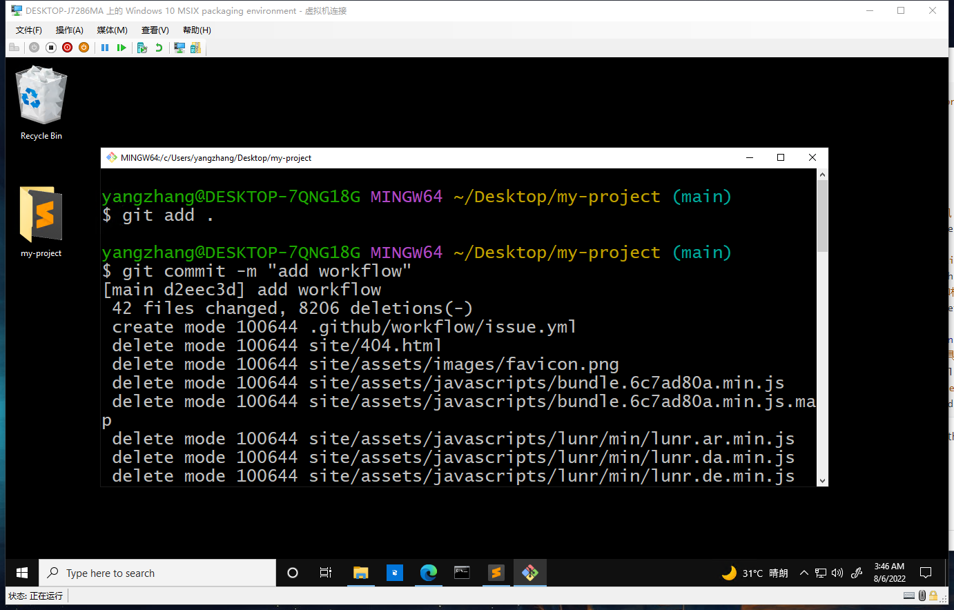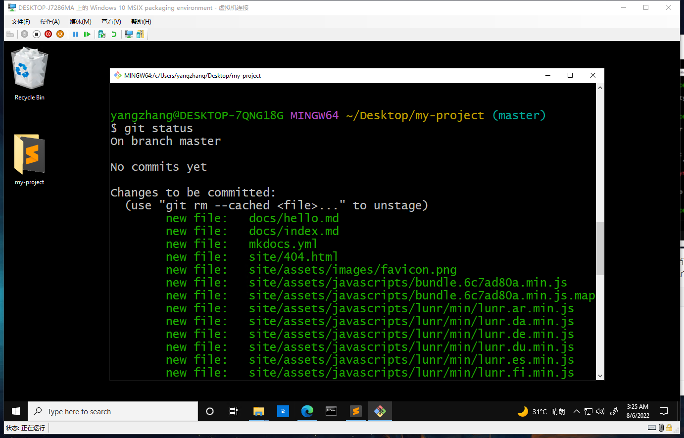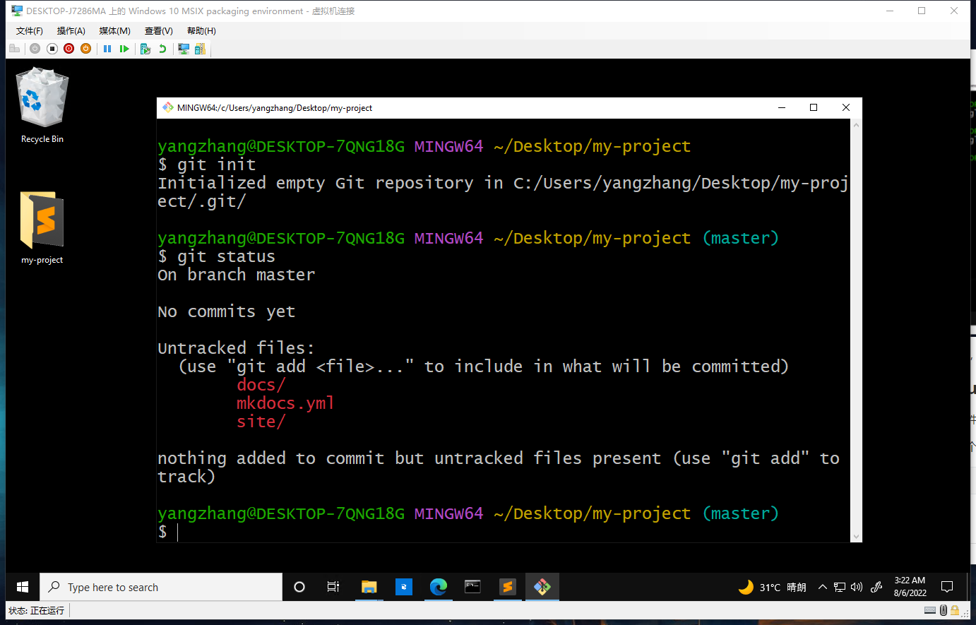 首先在项目根目录运行命令,初始化项目,让他成为一个git仓库:
