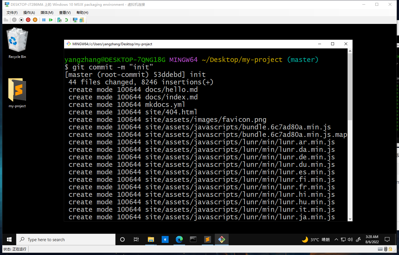 后面的-m "init"是附加一个message,git要求的每次commit都需要一个备注来说明本次commit的内容是什么: