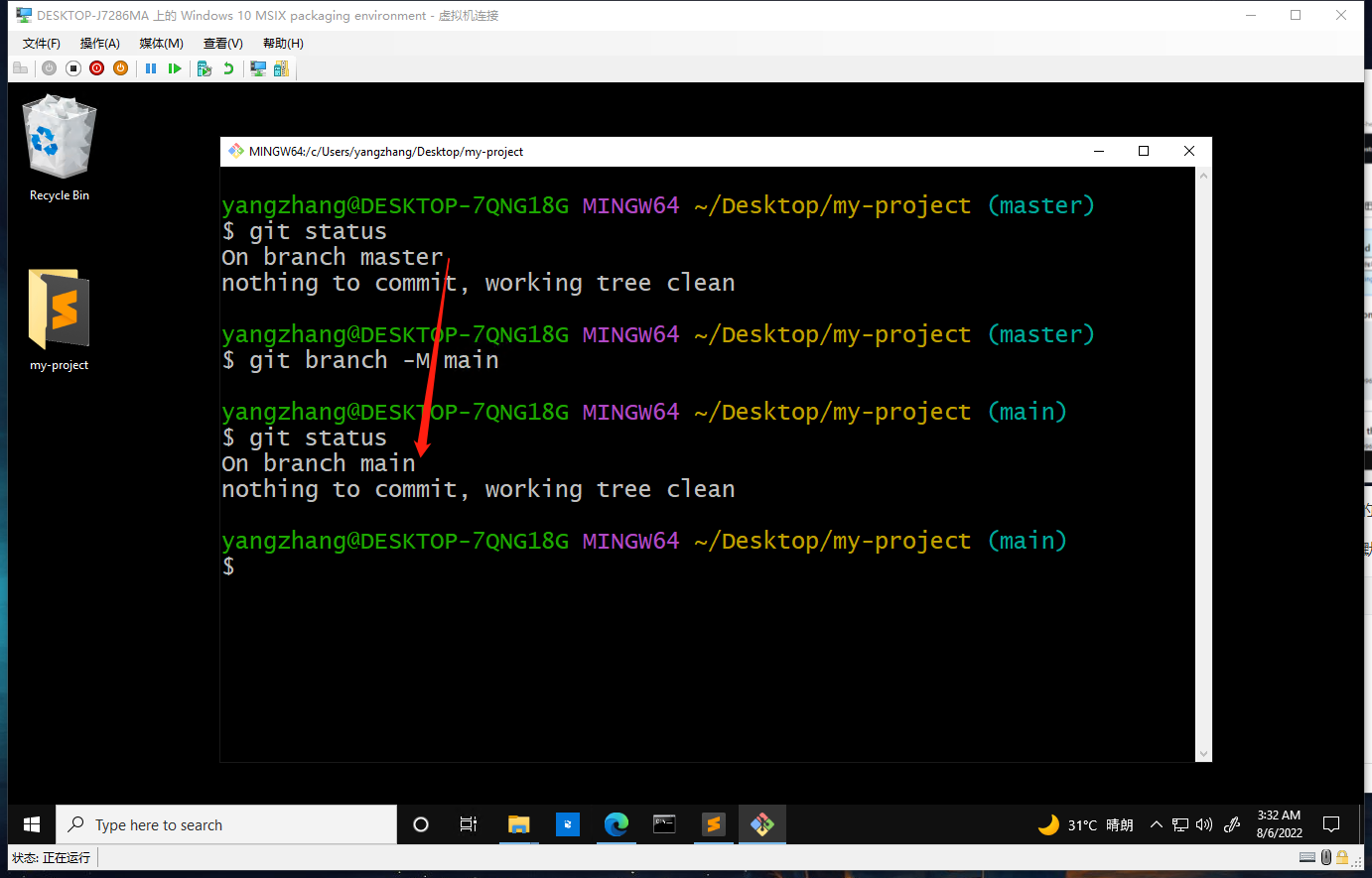 先修改分支的名字,因为git的默认分支名是master而GitHub现在使用的默认分支名是main: