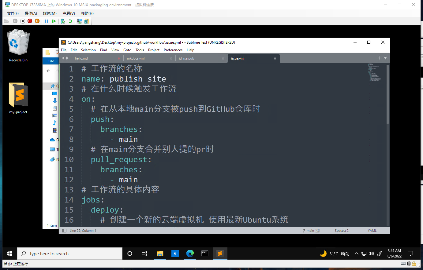 !!!千万要注意,workflows一个字母都不能差。我演示的时候就因为差了一个s,导致后续GitHub识别不到相关文件,实在是坑。