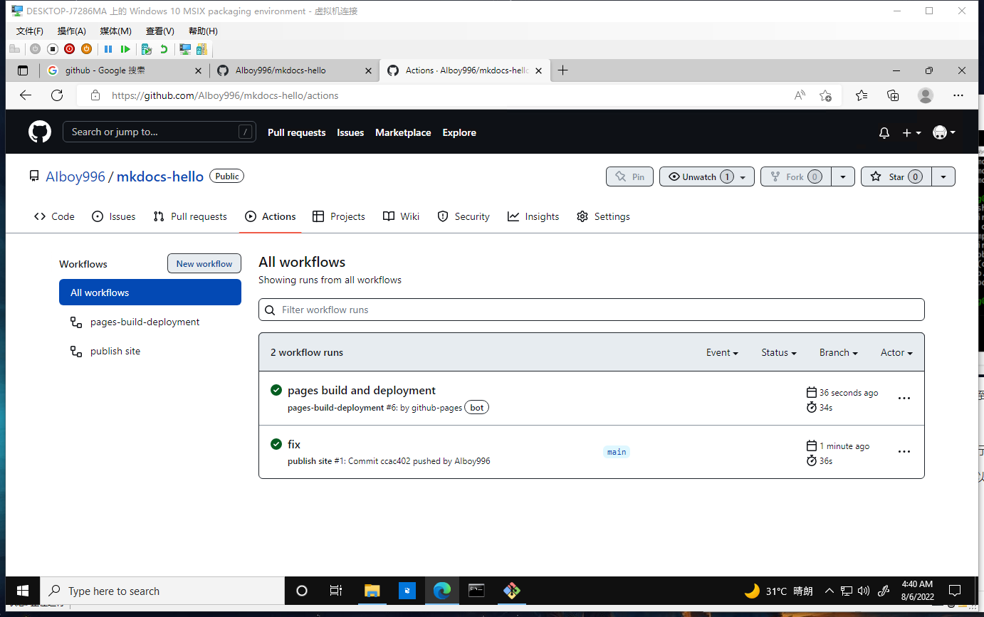 这里有两个Action,一个是我们写的issue.yml文件中的脚本,也就是publish site。