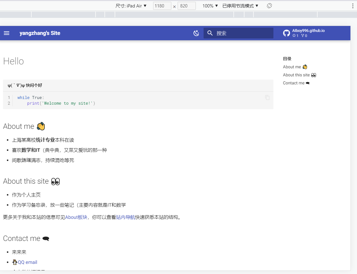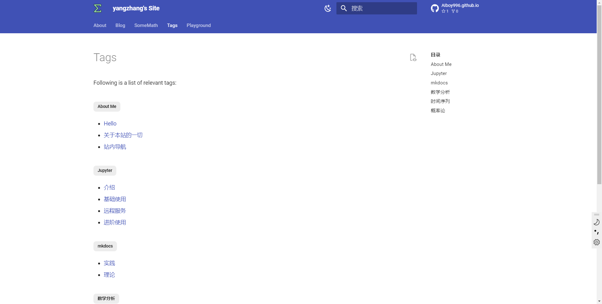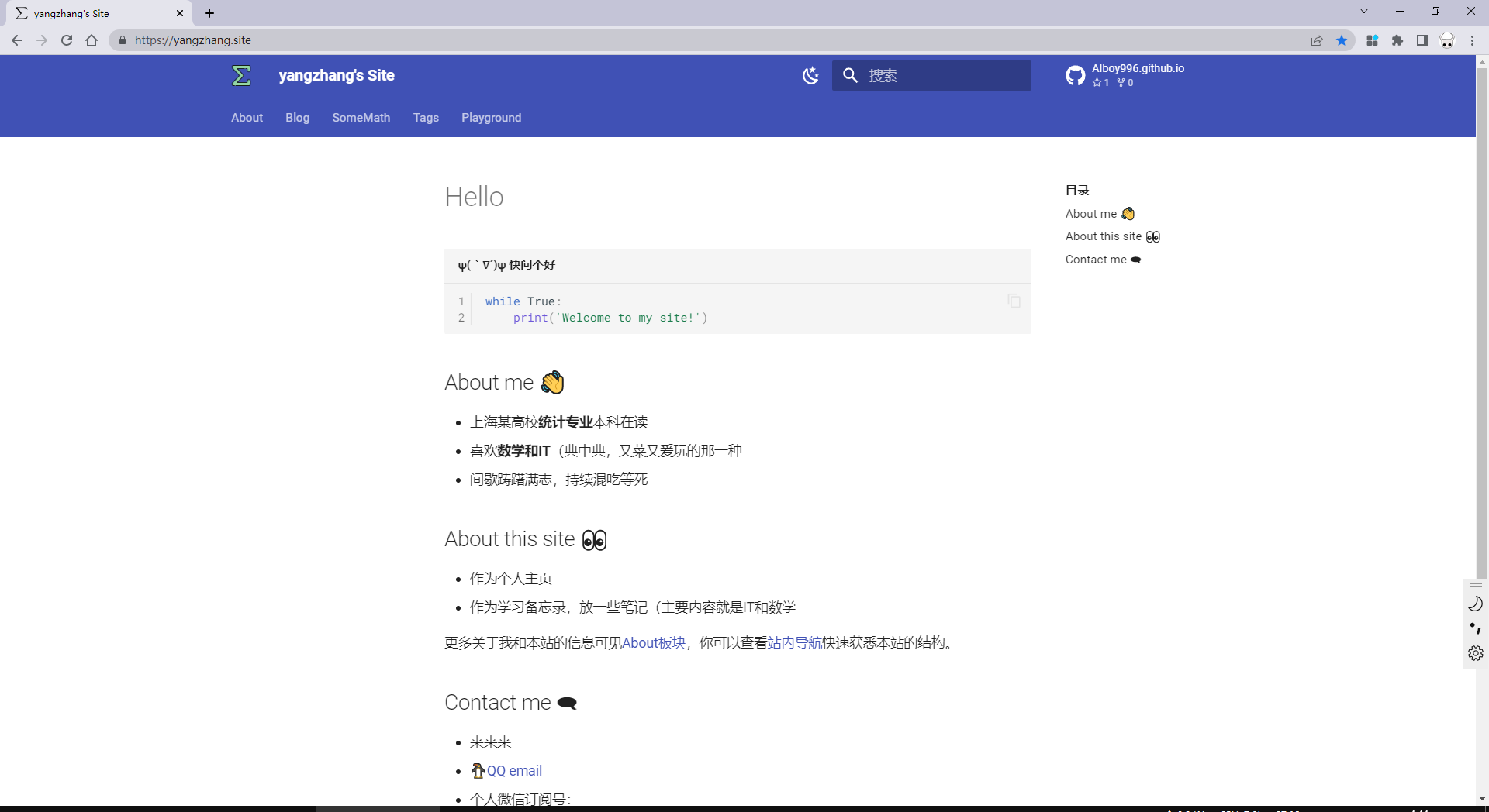 先给大家看看最终的效果,也欢迎自己去我的小站看一看:https://yangzhang.site,如果你想直接抄作业也可以到GitHub直接fork我的仓库,不要忘了点个star!