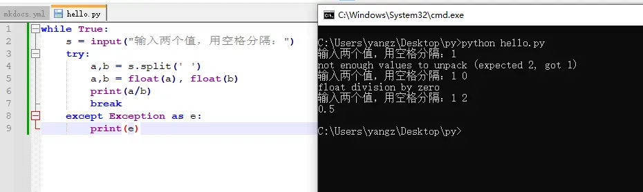 这里面try语句后面是容易出错的代码,except关键字用来捕获错误类型,as e则是把错误赋值给变量e。Exception是所有错误的父类,这样可以捕获任何类型的错误,而如果想要捕获特定类型的错误也可以这么写: