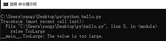 如果输入的不是整数,就触发TypeError("输入了错误的数据类型"),如果整数大于一千,就触发TooLarge。至此,读者应当掌握了自定义异常和触发他们的方法。