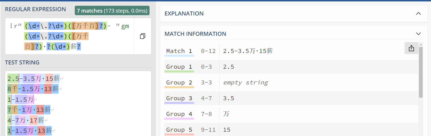 不难发现这里面最奇怪的一行就是r'(\d+\.?\d*)([万千百]?)-(\d+\.?\d*)([万千百]?)·?(\d*)薪?'。