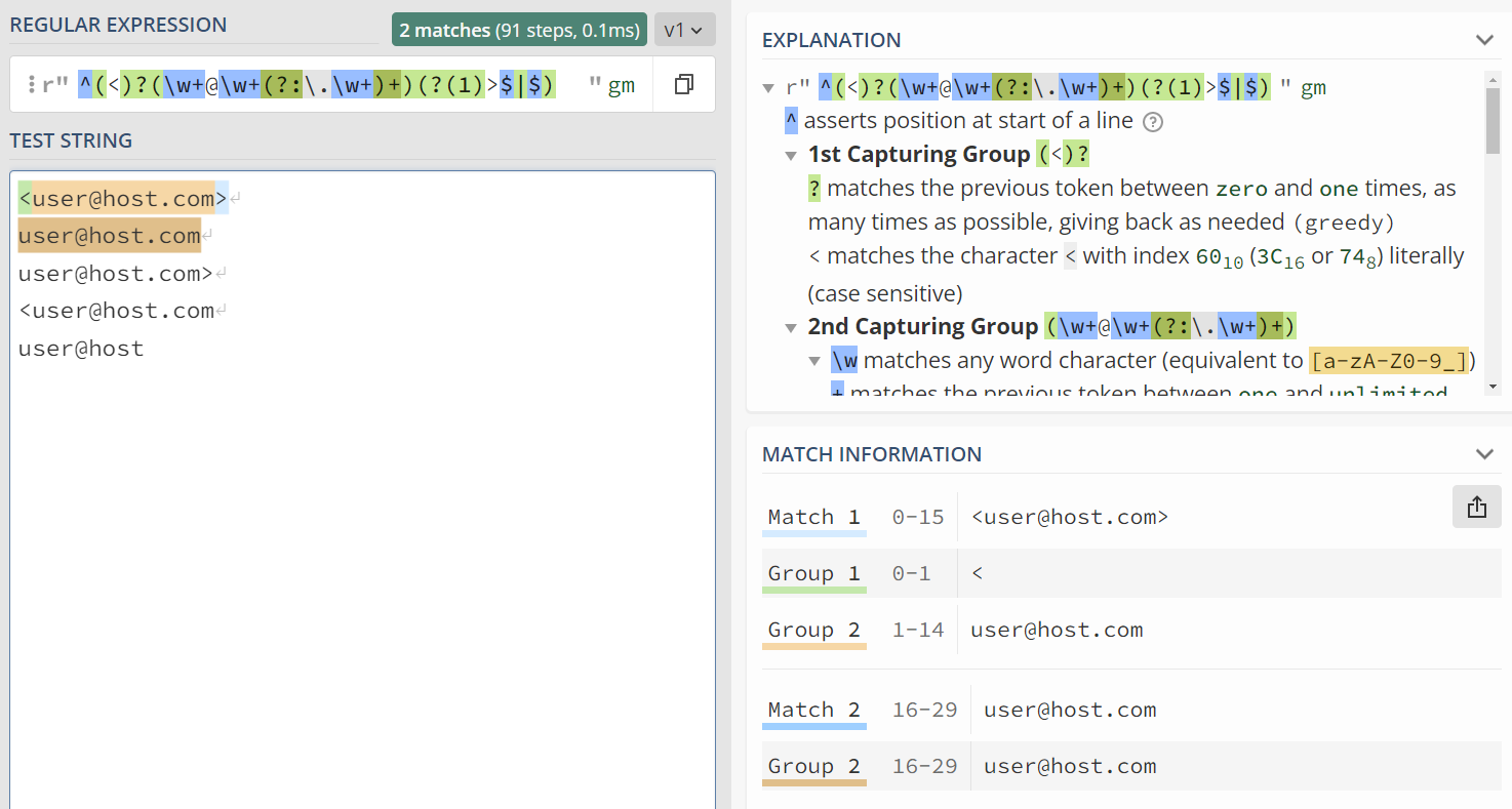 条件匹配:^(<)?(\w+@\w+(?:\.\w+)+)(?(1)>$|$)¶