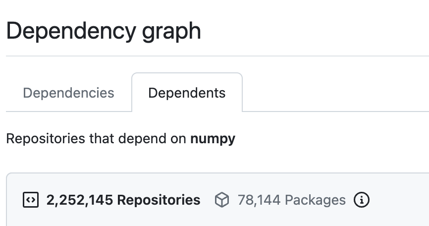 如其所言,NumPy(Numerical Python)是Python科学计算的基石。一个直观的例证是GitHub上有数以万计的包依赖numpy,有数以百万计的项目依赖numpy: