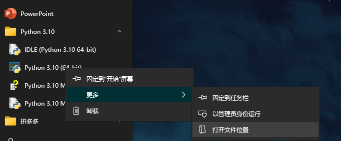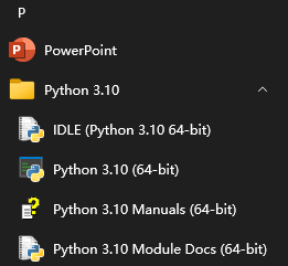 下载安装完成之后,可以在开始菜单找到python的快捷方式: