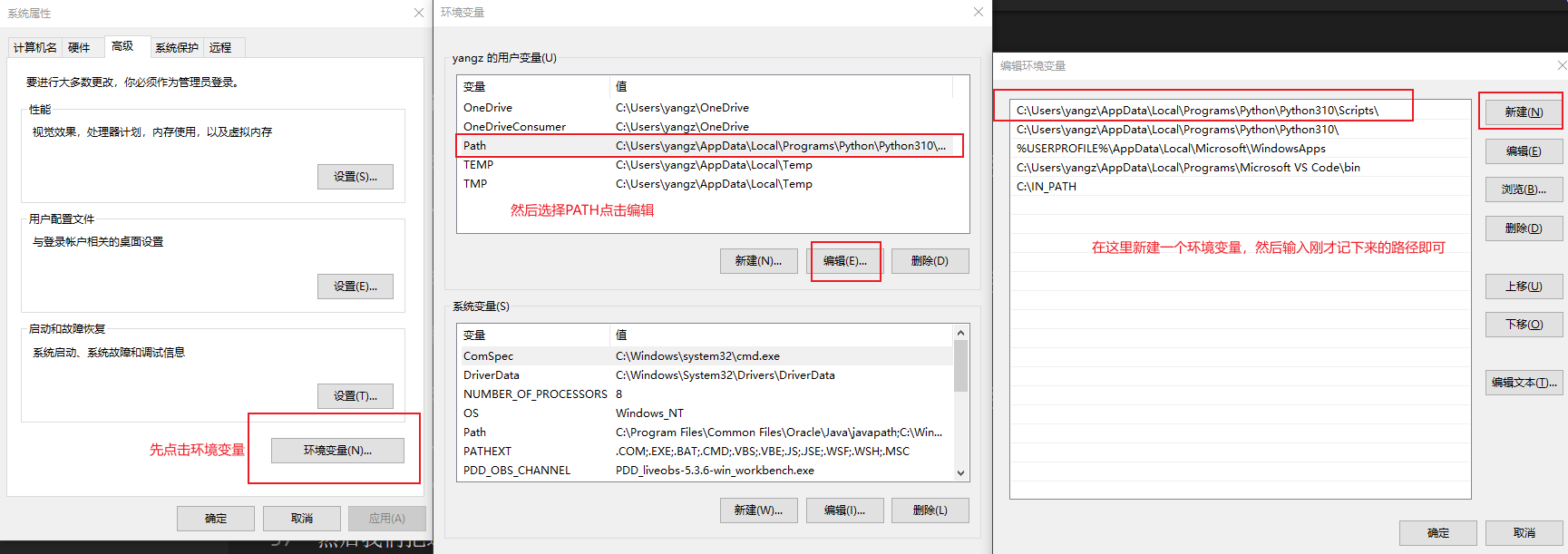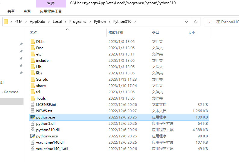 需要记下这个文件夹的路径: C:\Users\yangz\AppData\Local\Programs\Python\Python310