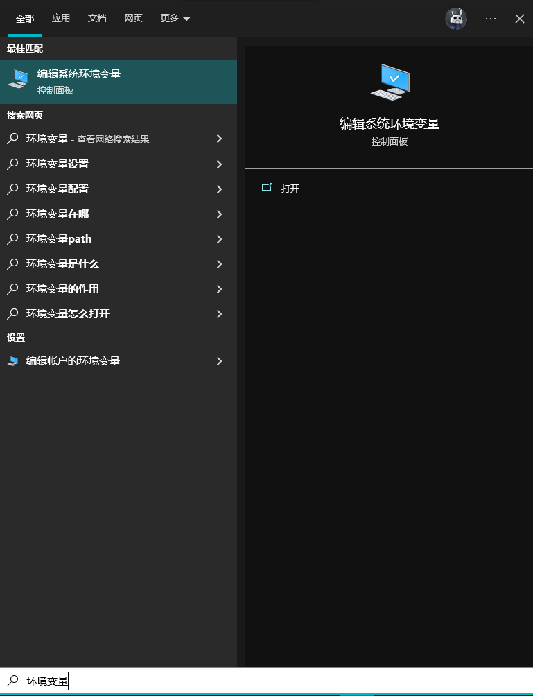 然后我们把这个路径添加到系统的PATH即可,在windows搜索环境变量点击运行: