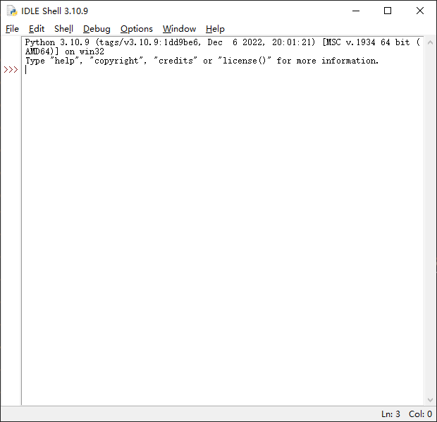 当然,使用python自带的IDLE也是不错的选项,打开之后也会直接进入python交互环境:
